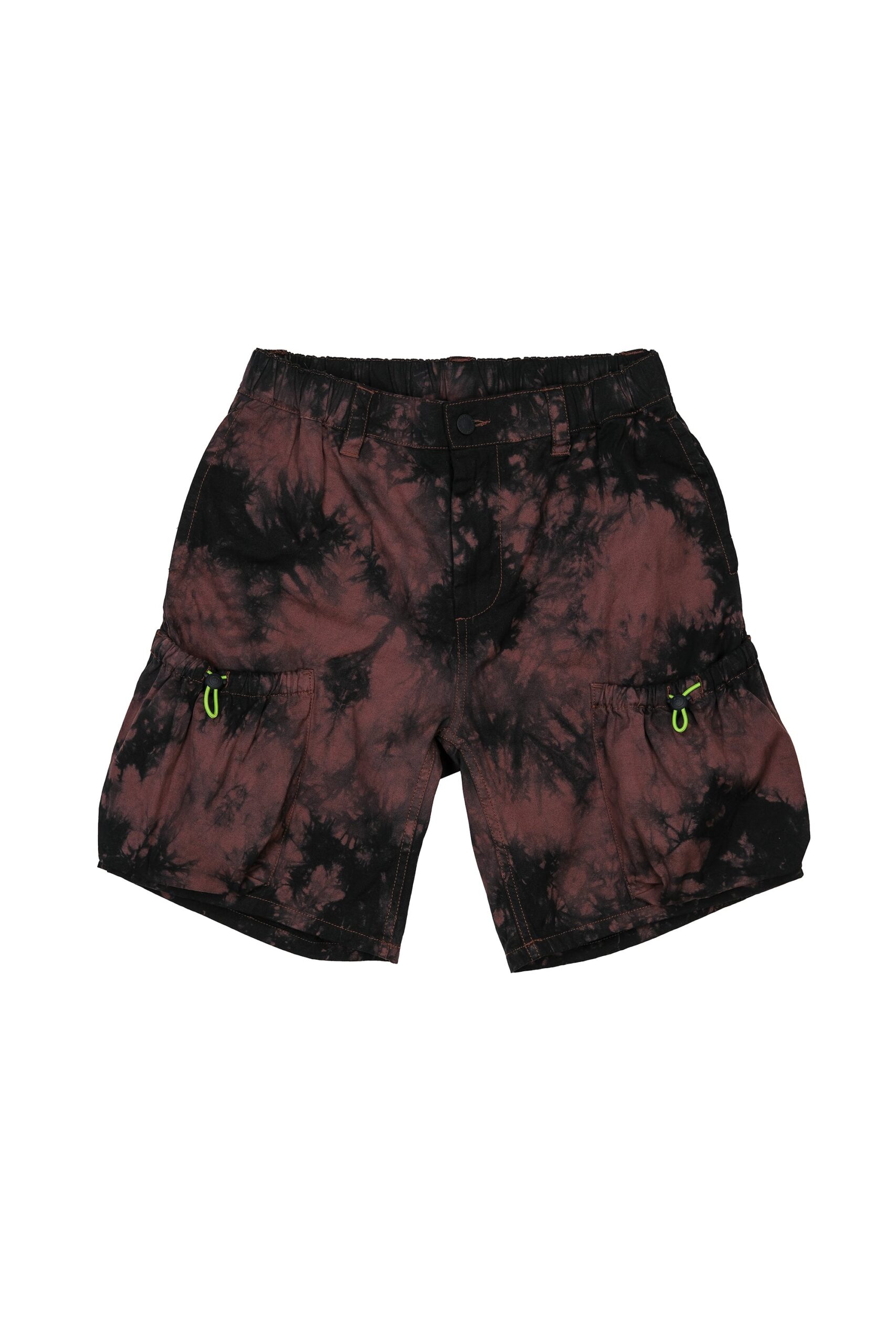 DETAILS Tie dye cargo shorts This garment has undergone a special dye process and is subject to natural variations. No two pieces are alike. Elasticated waistband with shank button closure and belt loops Side seam slit pockets Single rear welt pocket with top flap and TF rubber snap Front leg cargo pockets with bungee cord opening and bear head cord locks 100% Cotton, 220gsm FIT Unisex relaxed fit Size Medium: Waist (relaxed): 33″ Waist (extended): 42″ Hip: 45″ Inseam: 8″ Aman is 6’0″ and wearing size M Model’s chest/bust: 37″ Model’s waist: 30″ Model’s hip: 33″