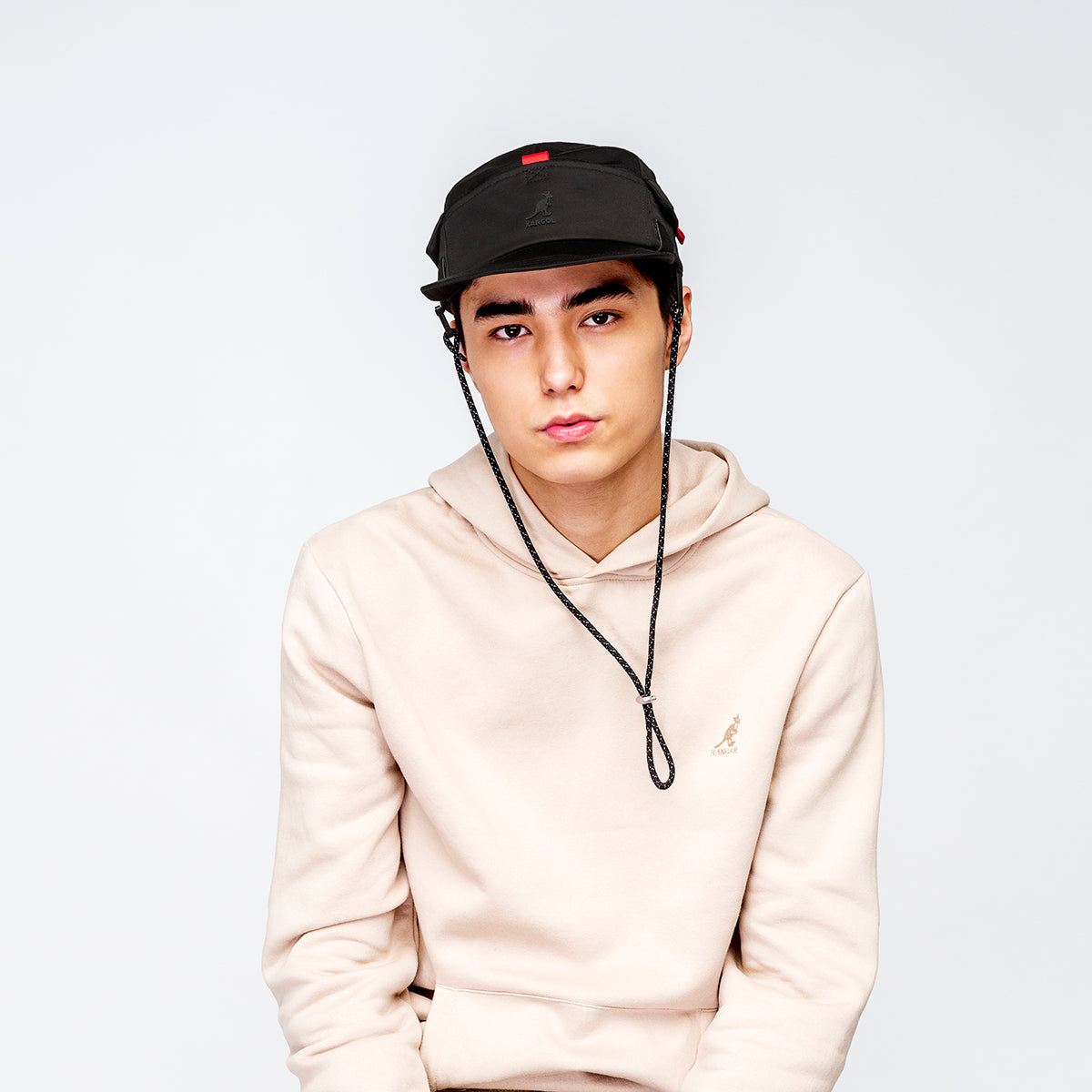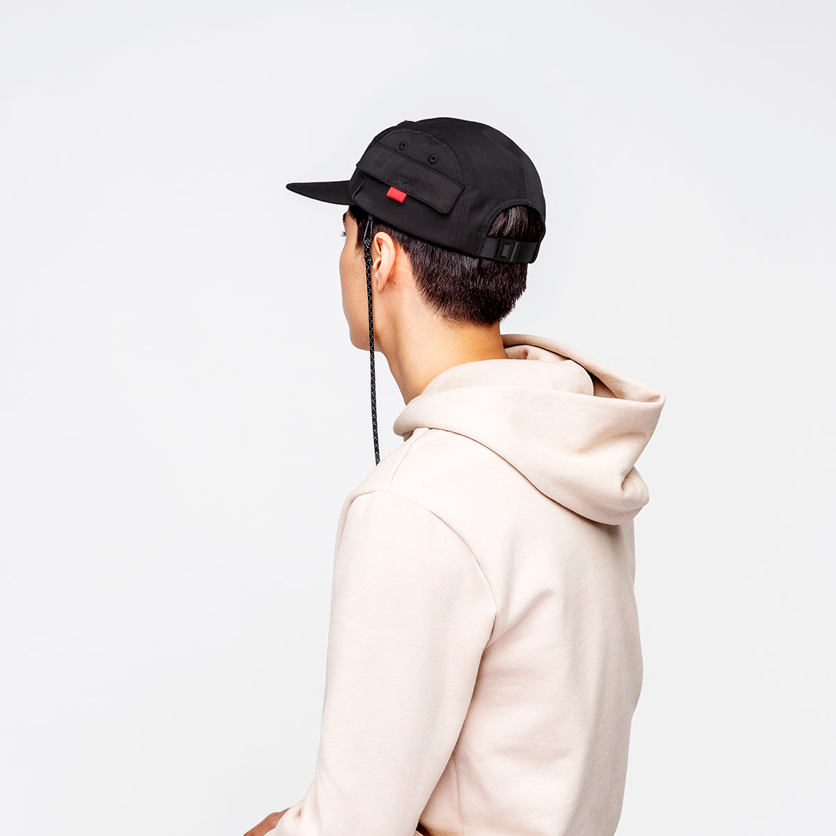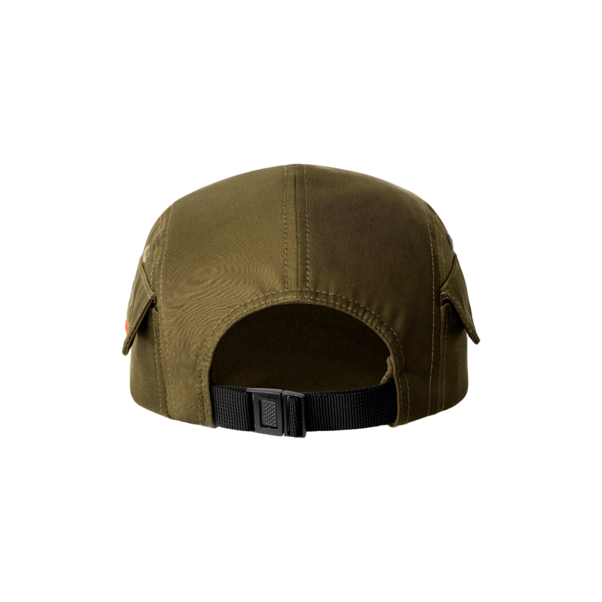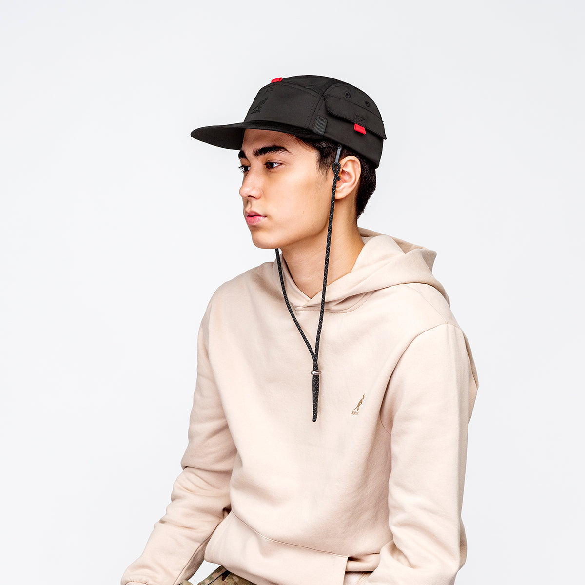 The Easy Carry 5 Panel Cap by Kangol is a lightweight and water repellent cap. It features a soft wicking mesh sweatband for comfort, along with 3 Velcro closure pockets, elastic loops at the sides of the head to slide in your sunglasses, and a detachable / adjustable reflective chin cord so losing this hat is not an option. It is complete with a back speed clasp adjuster for fit and a raised tonal silicone Kangol kangaroo logo at the front of the head.