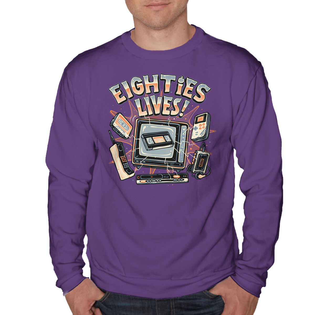 Eighties Lives is a great Unisex Crew Neck Sweatshirt from our amazing collection of custom fandom inspired products. This product was designed by glitchygorilla, who is part of our exclusive pop-culture inspired artist community.