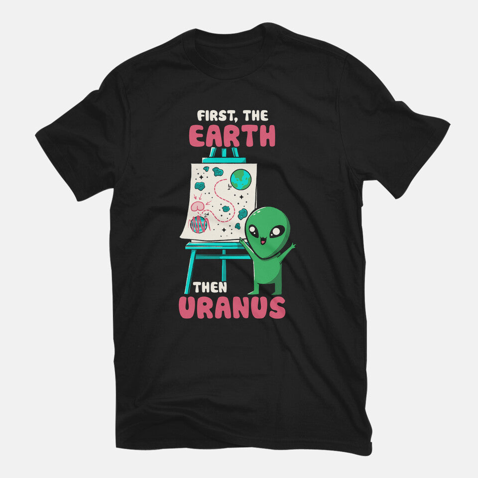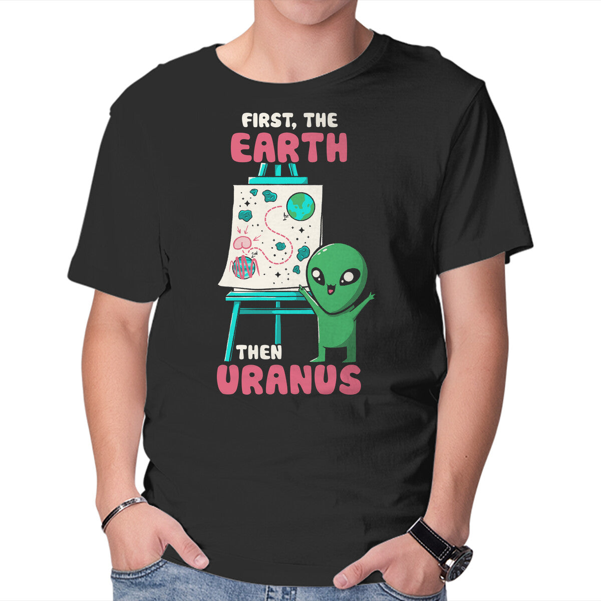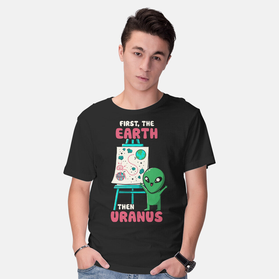 First The Earth Then Uranus is a great Mens Basic Tee from our amazing collection of custom fandom inspired products. This product was designed by tobefonseca, who is part of our exclusive pop-culture inspired artist community.