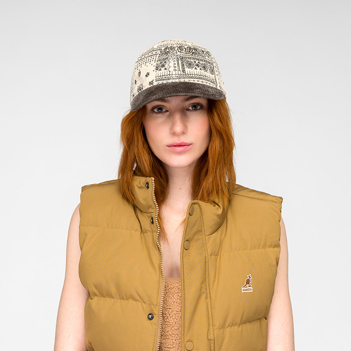 The FlexFit Cord Baseball Cap by Kangol is a 2-tone corduroy style that features the FlexFit signature stretch. The peak is moldable to fit your needs and a subtle bandana-inspired print on the crown adds style points. It is finished with a Kangol arc logo embroidery on the front. 2 5/8″ Peak All Season Style Fitted Baseball Cap