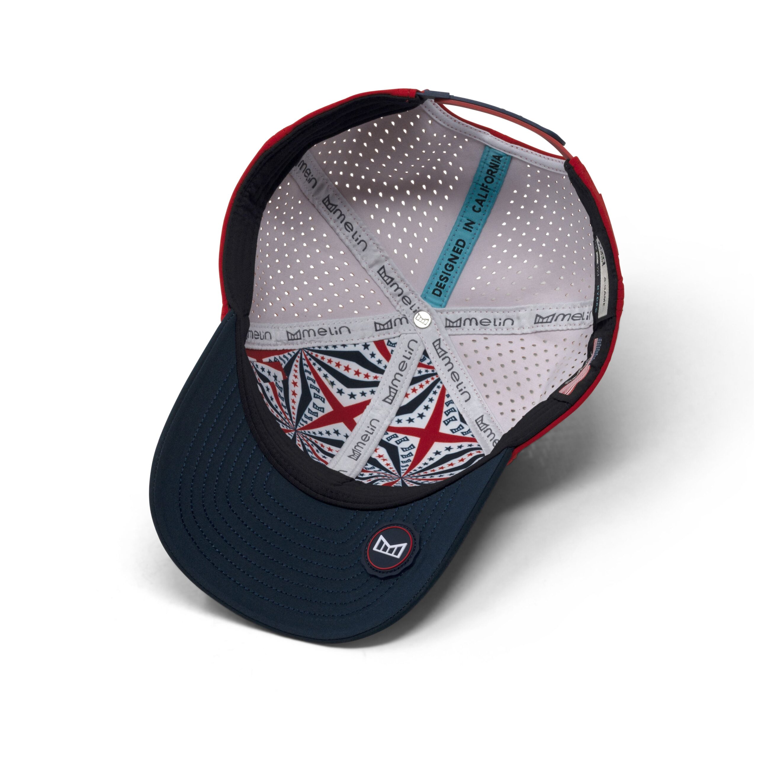 The Hydro A-Game Americana Shield Baseball Cap by Melin in a new, limited-edition colorway, that shows off your red, white and blue spirit. This classic baseball cap is bright, bold, and will stand out. Features include: Hydrophobic technology to bead away water Water repellent Floatable & water friendly Lightweight & breathable Hidden Besom pocket Antimicrobial Mid-depth fit Classic size: 7 3/8″ – 7 5/8″ (58.5cm – 60.5cm)