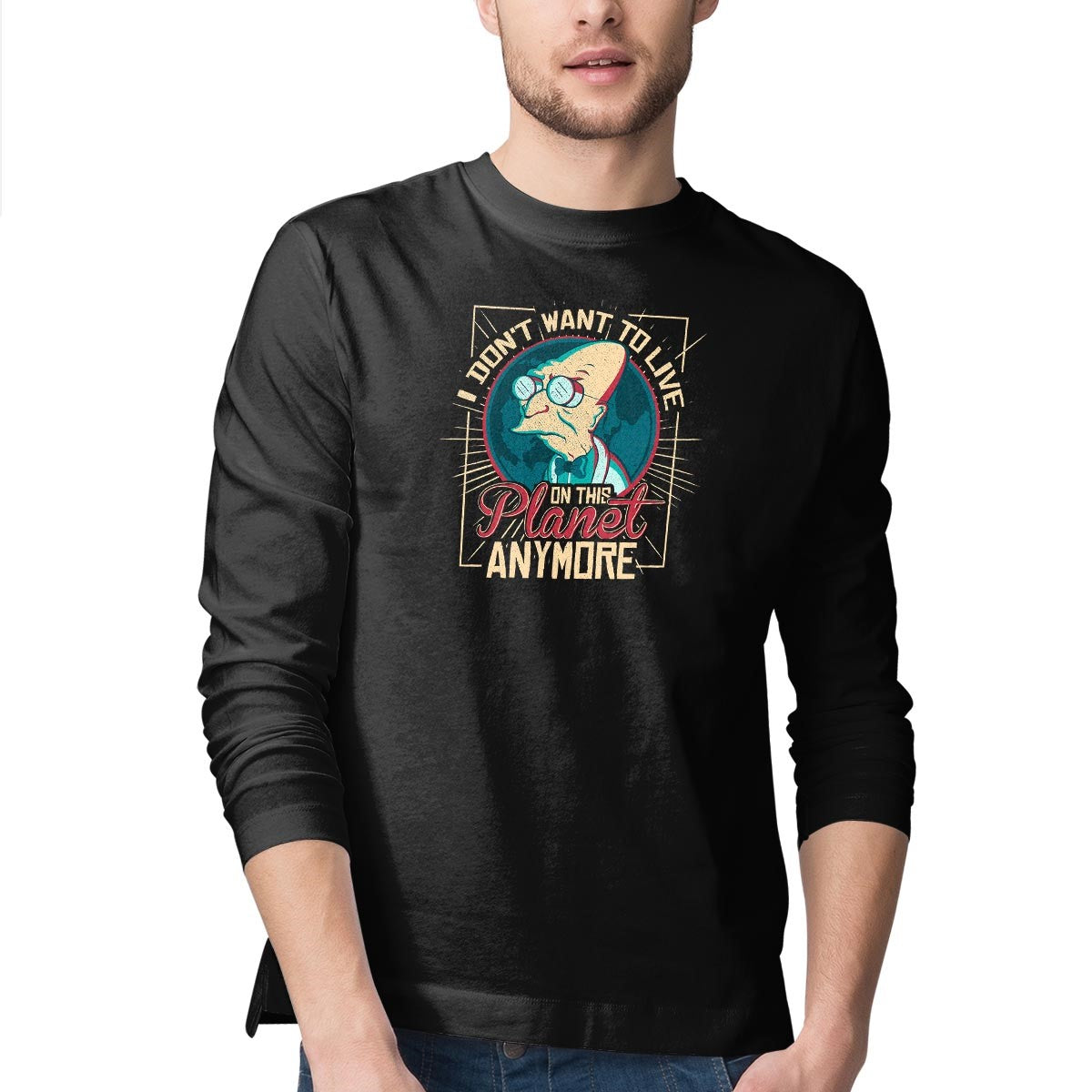 I Don’t Want To Live On This Planet Anymore is a great Mens Long Sleeved Tee from our amazing collection of custom fandom inspired products. This product was designed by TomTrager, who is part of our exclusive pop-culture inspired artist community.