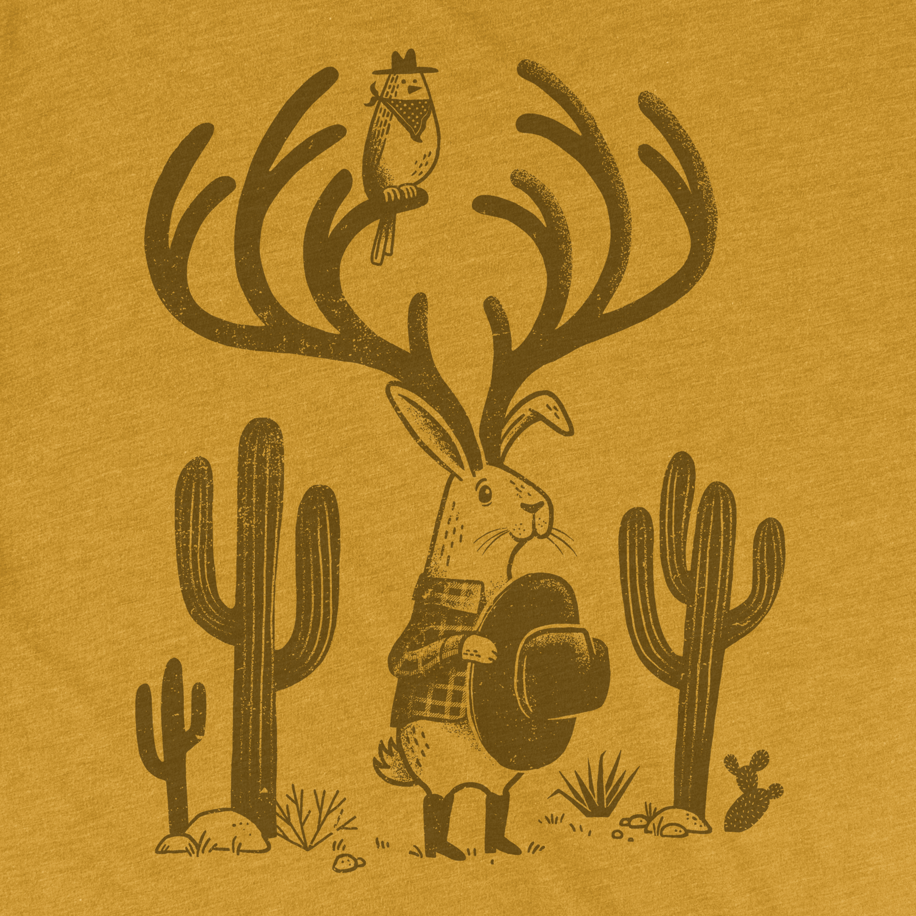 Super-soft triblend tee in Mustard or Dusty Blue. Water-based inks 3.8 oz., 50% polyester, 25% combed and ringspun cotton, 25% rayon blend