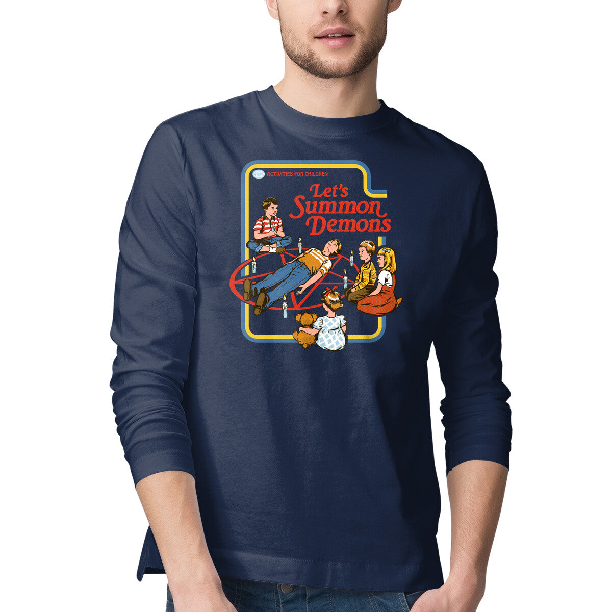 Let’s Summon Demons is a great Mens Long Sleeved Tee from our amazing collection of custom fandom inspired products. This product was designed by Steven Rhodes, who is part of our exclusive pop-culture inspired artist community.