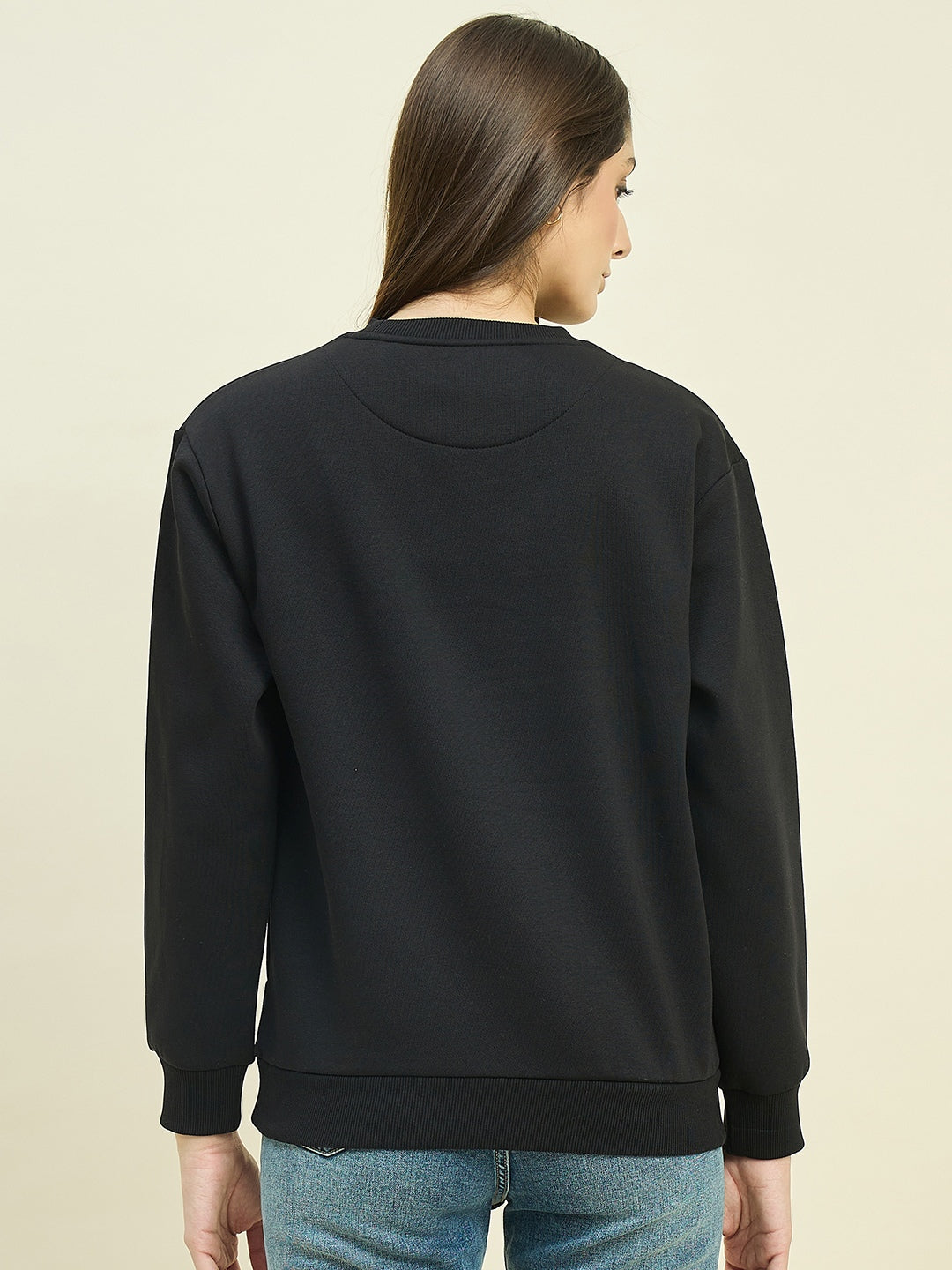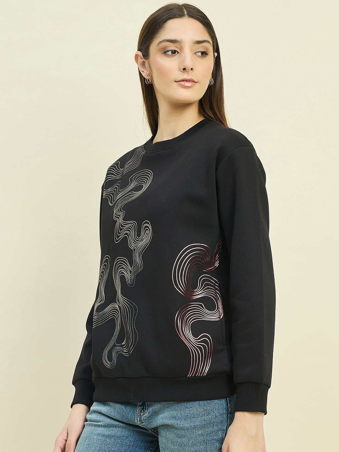 Elevate your casual wardrobe with the black cotton blend printed sweatshirt from Madame. Soft, comfortable, and stylish, it pairs perfectly with jeans or leggings, making it ideal for everyday wear or relaxed outings.