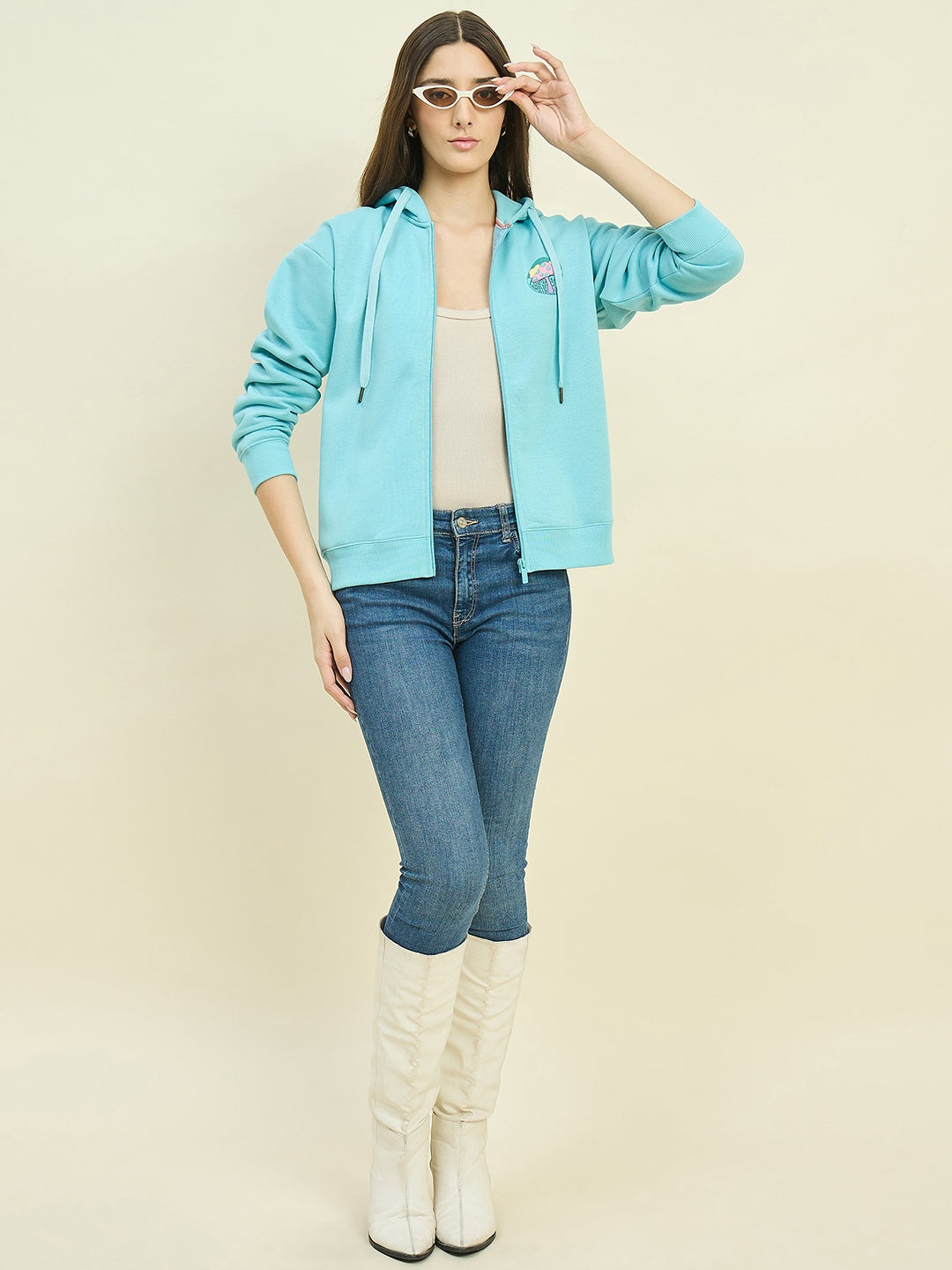 Madame Blue Cotton Blend Hooded Sweatshirt