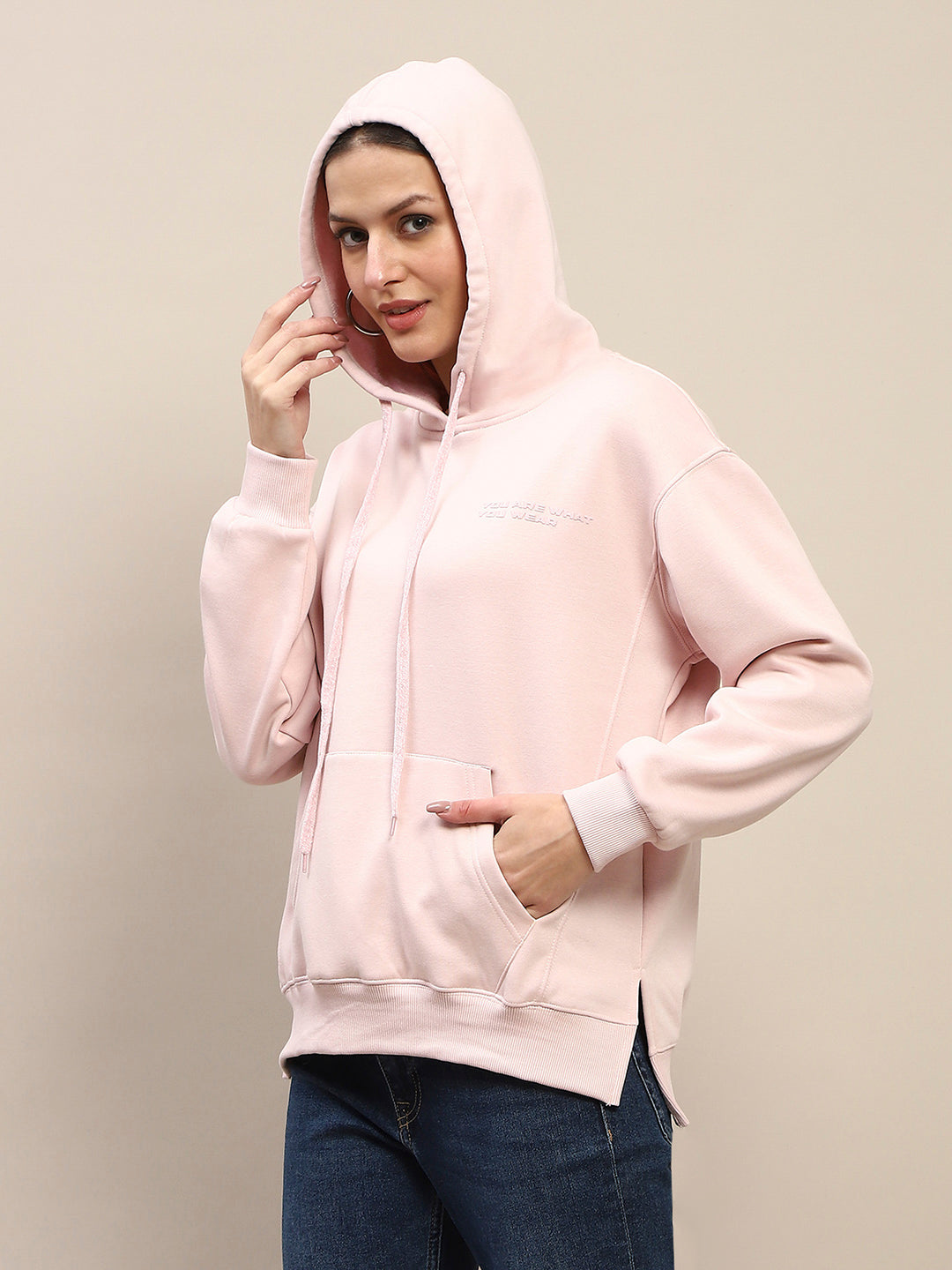 In a charming dusty pink hue, this stylish piece is designed for comfort and versatility, making it perfect for stepping out for a coffee run. The soft cotton fabric feels gentle against the skin, while the close fit provides a flattering silhouette. The eye-catching placement print adds a unique touch, ensuring you stand out in a crowd. With a cozy hood to keep you warm and a relaxed vibe, this sweatshirt is a must-have for any fashion-forward individual.