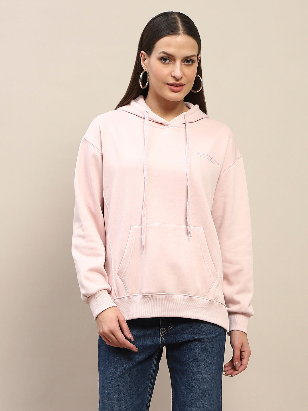Madame Cotton Placement Print Hooded Dusty Pink Sweatshirt