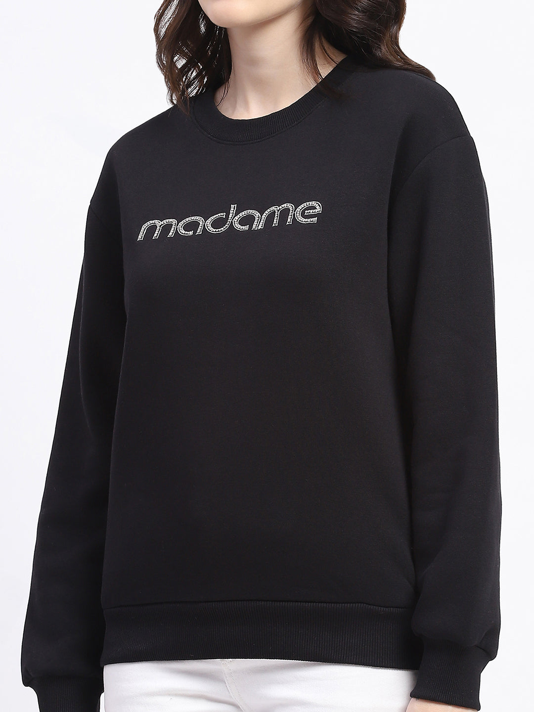 Madame Fleece Handwork And Embroidered Black Sweatshirt