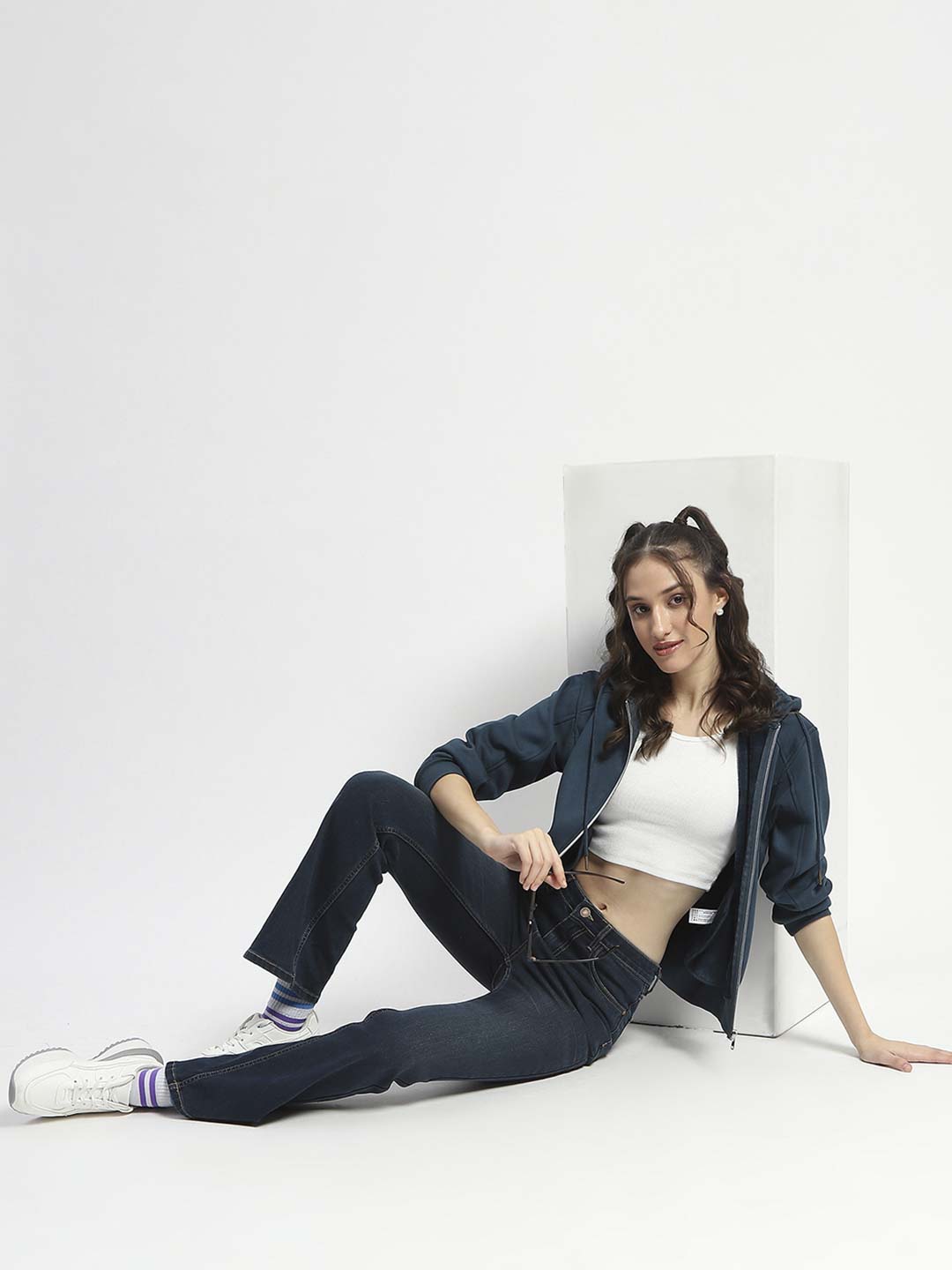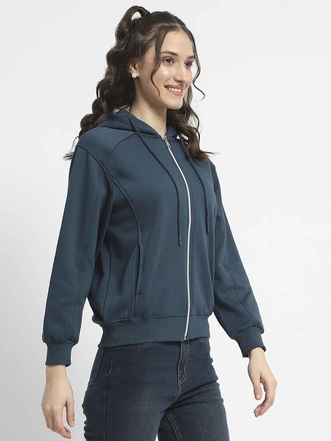Madame Zip and Hooded Solid Peacock Cotton Sweatshirt