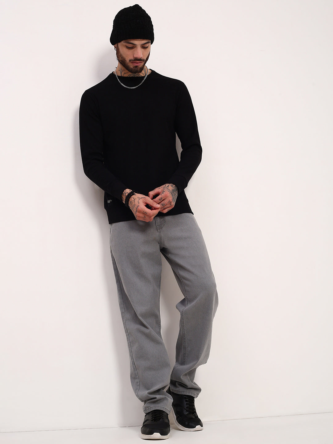 Discover the ultimate comfort and style with our Men Black Solid Sweatshirt. This versatile piece is designed for every occasion, whether you’re lounging at home or heading out for a casual day out. Crafted from premium quality fabric for a soft and cozy feel. Features a stylish solid black design that complements any outfit. Available in various sizes to ensure a perfect fit for everyone. Why to buy this product? This Men Black Solid Sweatshirt is a must-have addition to your wardrobe. Its sleek design and comfortable material make it perfect for layering or wearing on its own. Plus, the timeless black color ensures it pairs well with any bottoms, making it your go-to choice for effortless style. Styling tips Pair it with jeans and sneakers for a casual look. Layer it under a jacket for added warmth during cooler days. Wash care instructions: To keep your Men Black Solid Sweatshirt looking fresh, machine wash it in cold water with like colors. Avoid bleach and tumble drying. For best results, hang it to dry and iron on a low setting if needed.