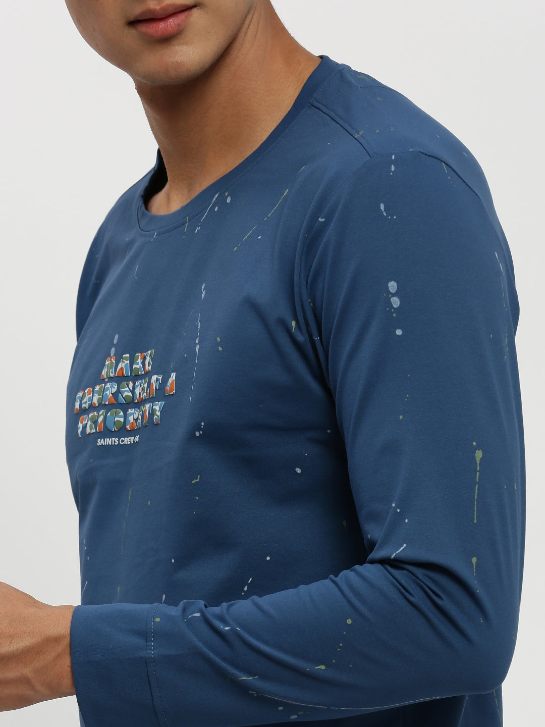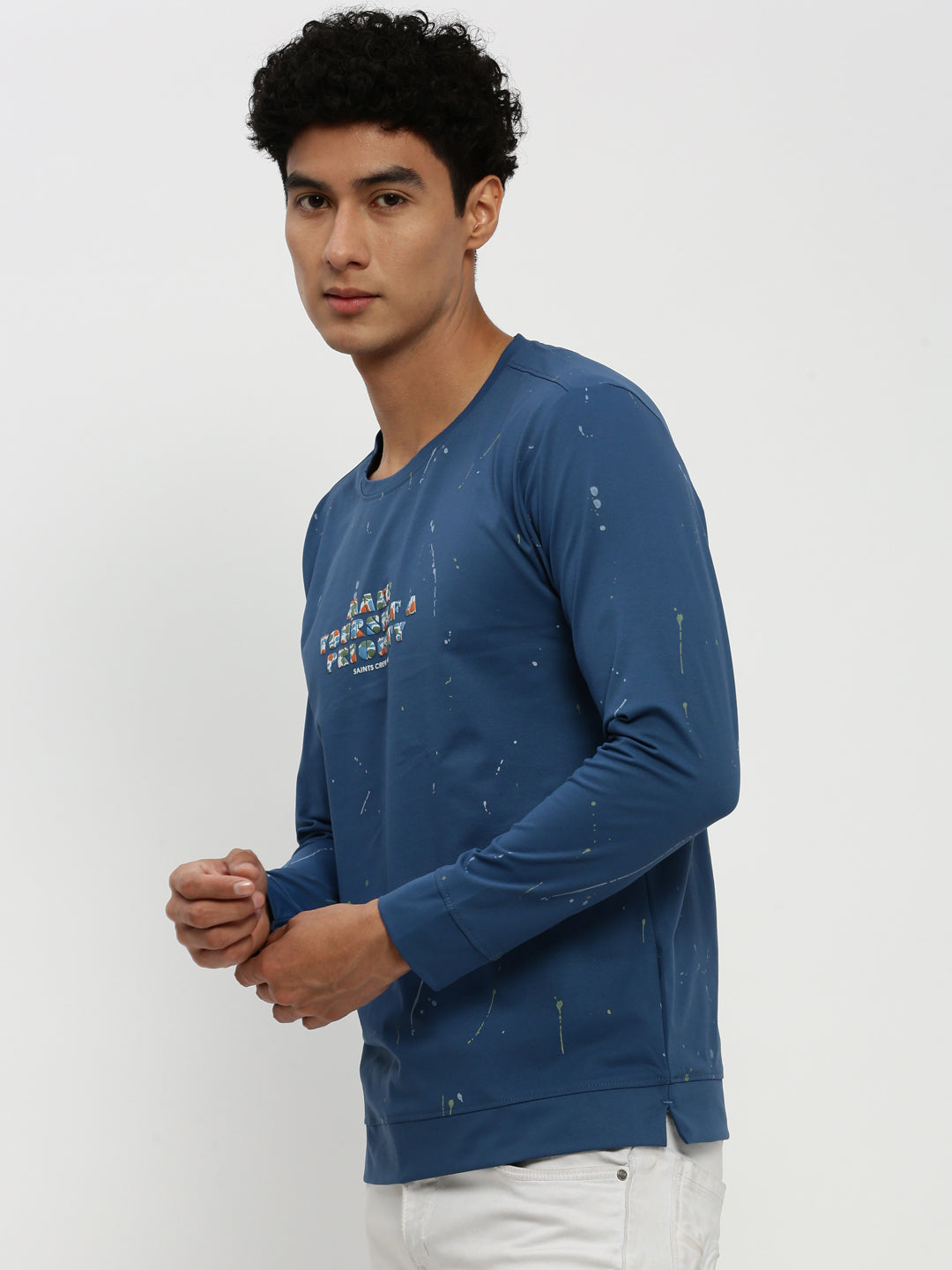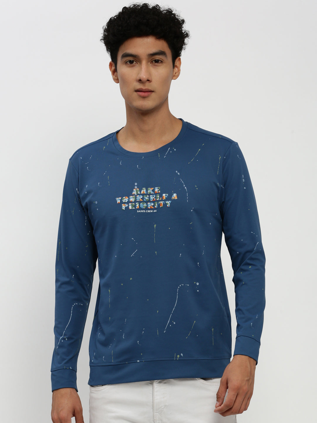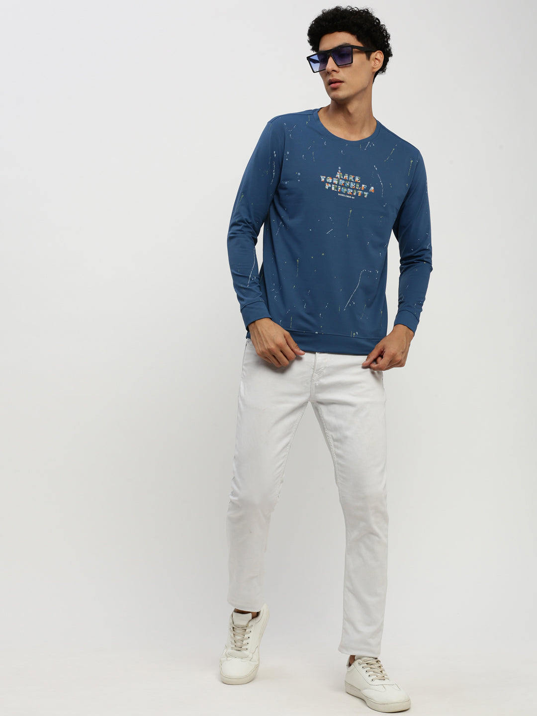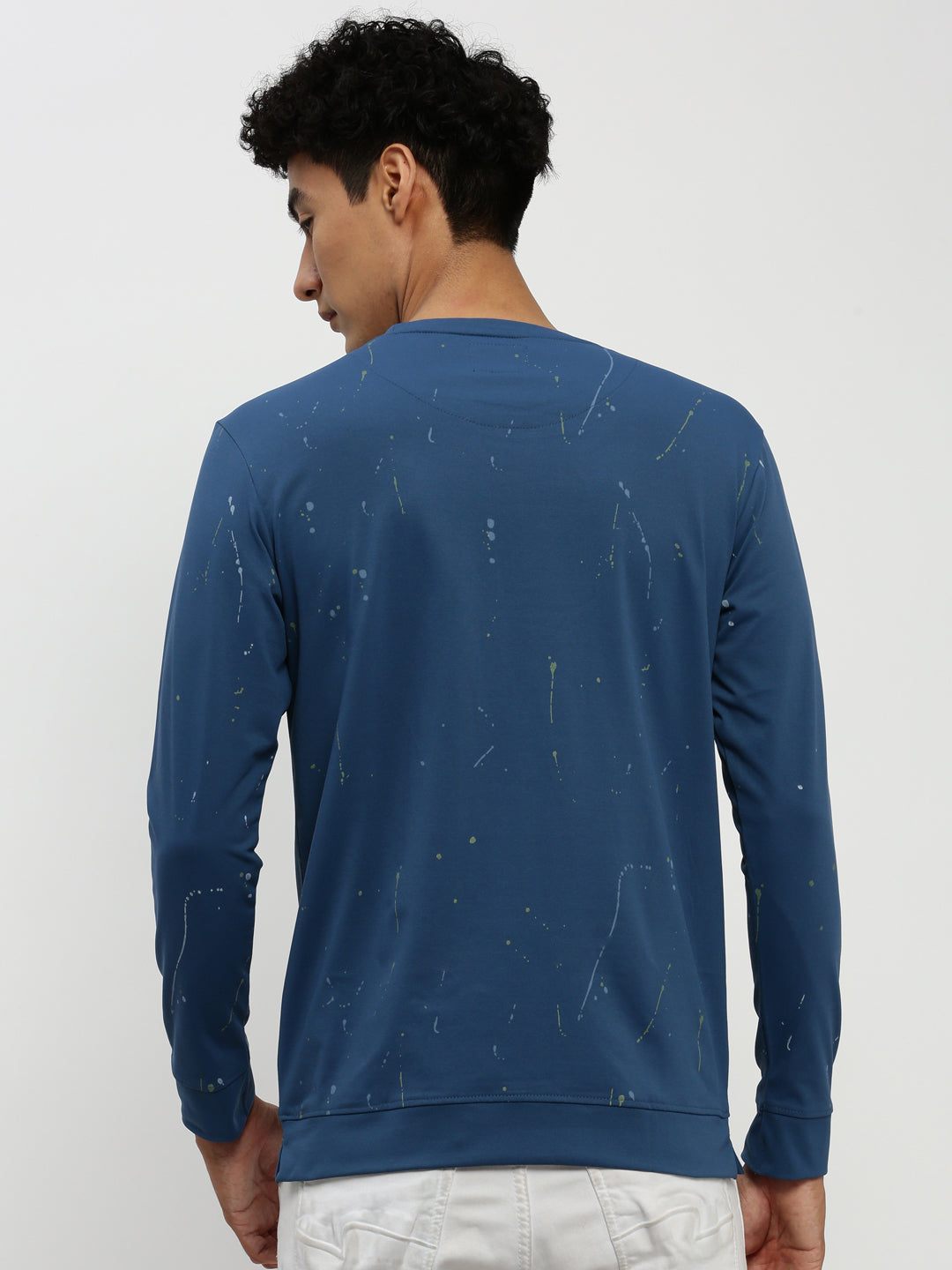 Men’s Blue Printed Round Neck Cotton Sweatshirt