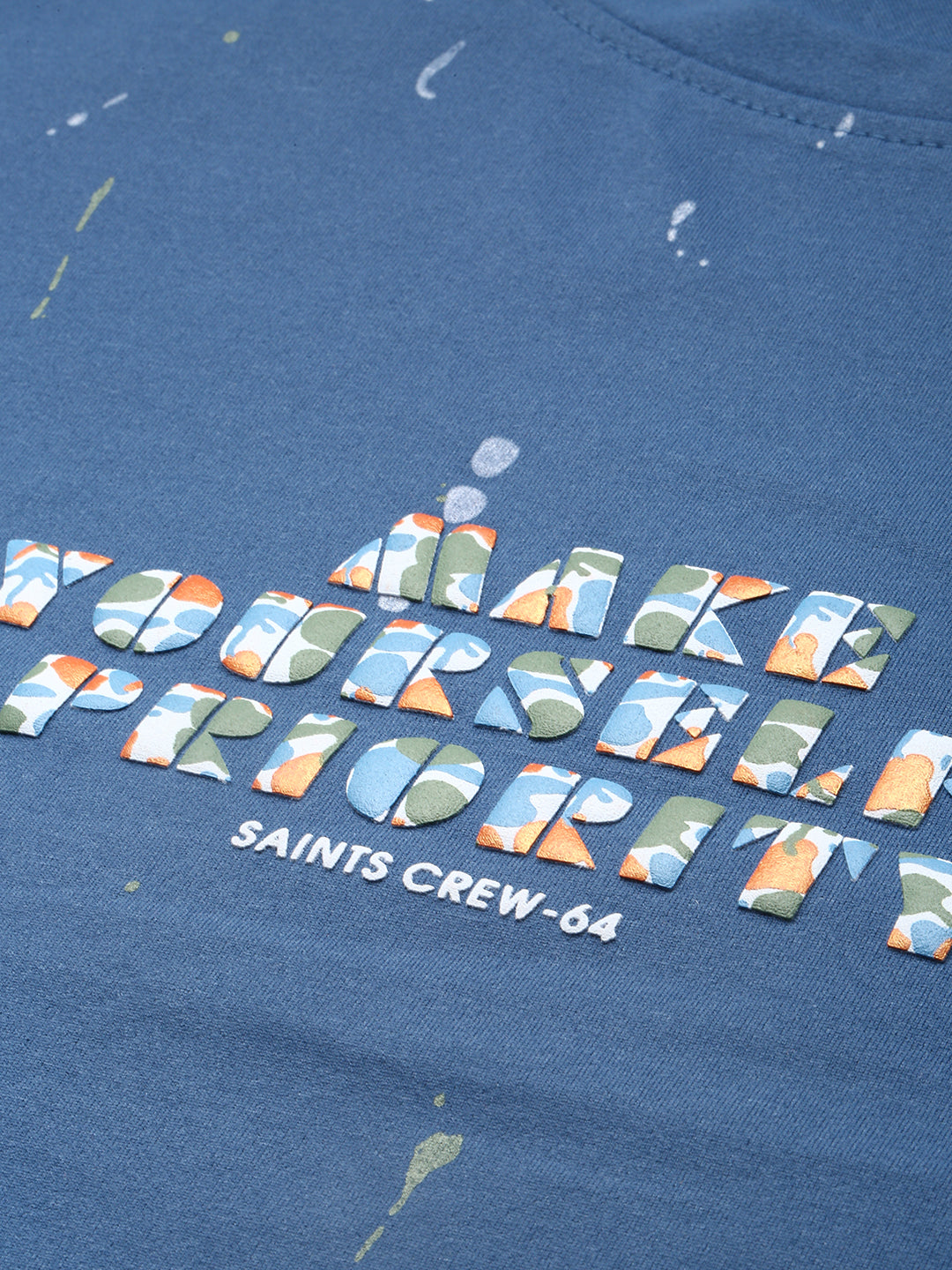 Elevate your casual wardrobe with the Men Blue Typographic Sweatshirt, designed for comfort and style. This trendy piece combines bold typography with a rich blue hue, making it a perfect addition to your everyday outfits. Soft and breathable fabric for all-day comfort. Eye-catching typographic design that stands out. Versatile style that pairs well with jeans or joggers. Why to buy this product? This sweatshirt not only keeps you warm but also allows you to express your unique style effortlessly. The quality craftsmanship ensures it will be a staple in your wardrobe for years to come. Styling tips Layer it with a denim jacket for a trendy look. Pair with chinos and sneakers for a smart-casual vibe. Wash care instructions: To keep your sweatshirt looking fresh, machine wash in cold water and tumble dry on low. Avoid bleach to maintain the vibrant color and typography.