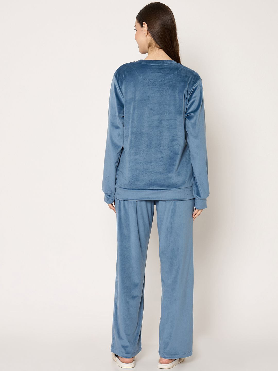Unwind in effortless comfort with the mSECRET Round Neck Printed Teal Night Suit. Designed in a refreshing teal hue with an all-over print, this set features a classic round neckline and a relaxed fit for easy movement. Crafted from soft, breathable fabric, it’s perfect for peaceful nights and laid-back lounging at home.