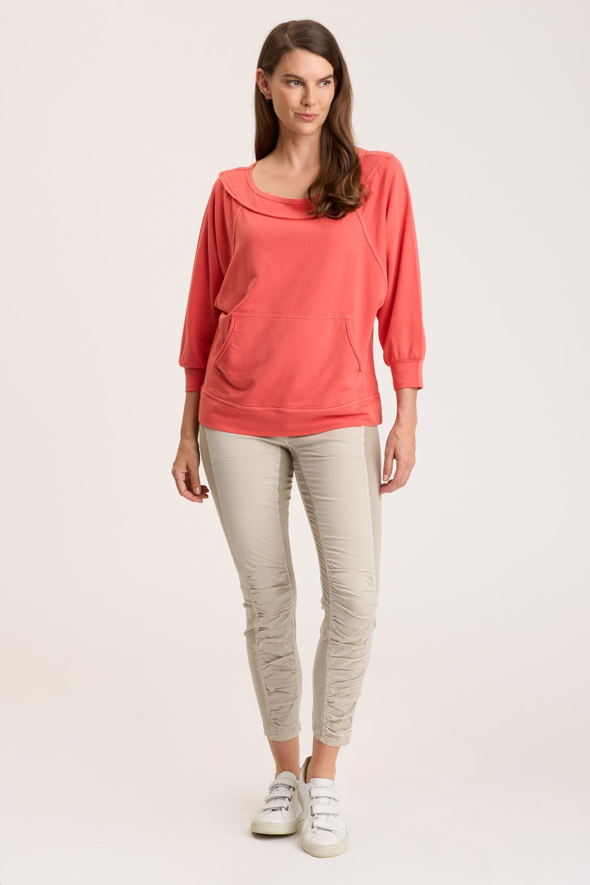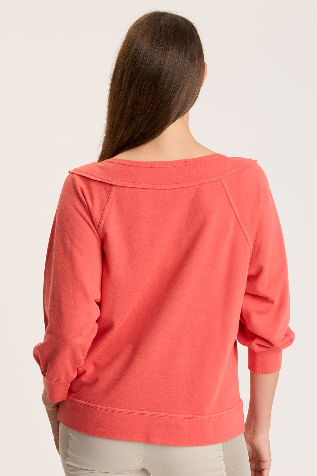 Boat neck, kangaroo pocket, raglan sleeves and raw edges help to pull Orville in front of the pack! Grab up this cozy one ASAP! Splendid Terry: 60/40 Cotton/Rayon. Center Front: ~22.5″ Center Back: ~24.25″ Color Description: Intense red orange Preshrunk Machine washable Imported MODEL Veronica is wearing size Small Height: 5’10” | Bust: 34B | Waist: 28″ | Hip: 37″