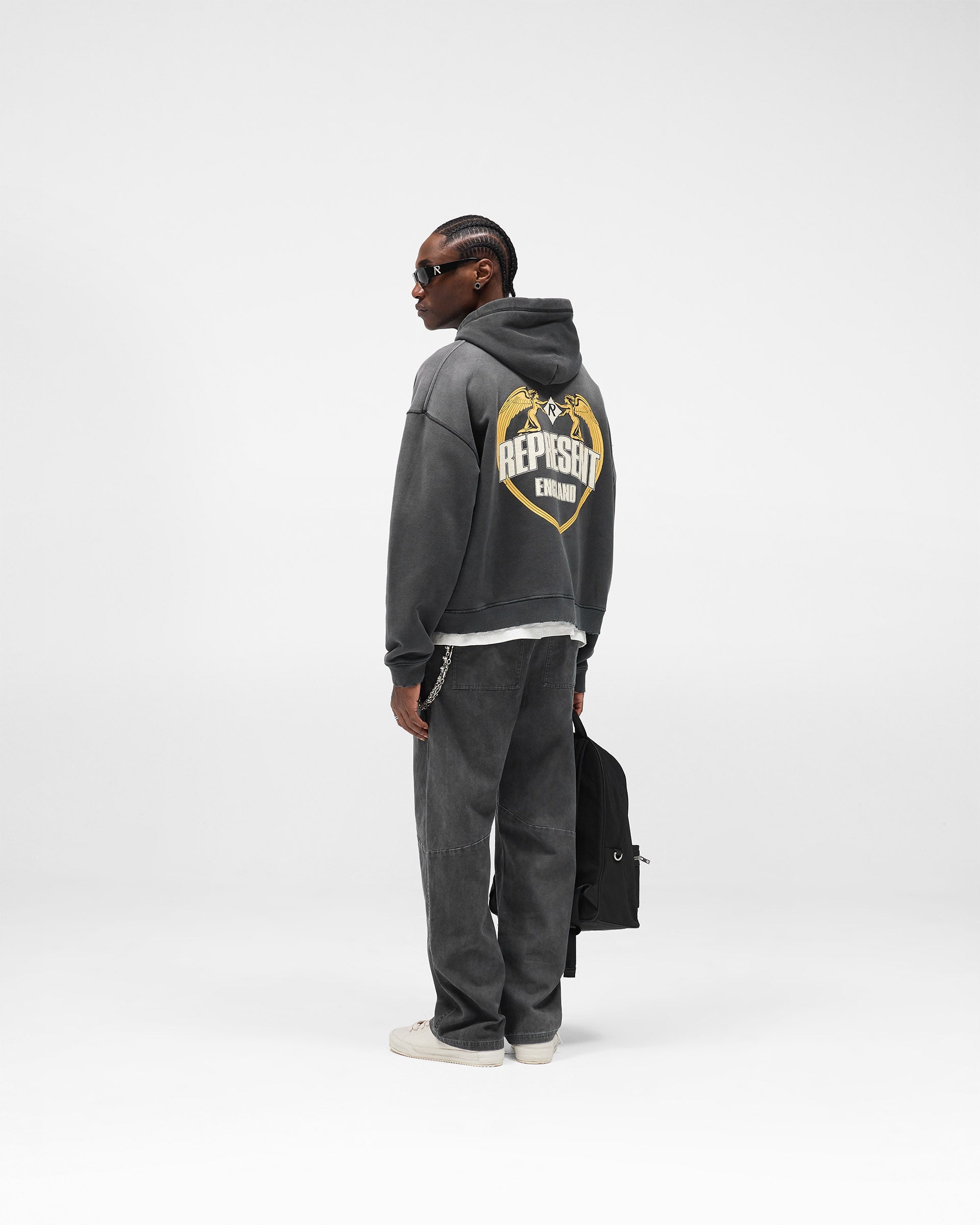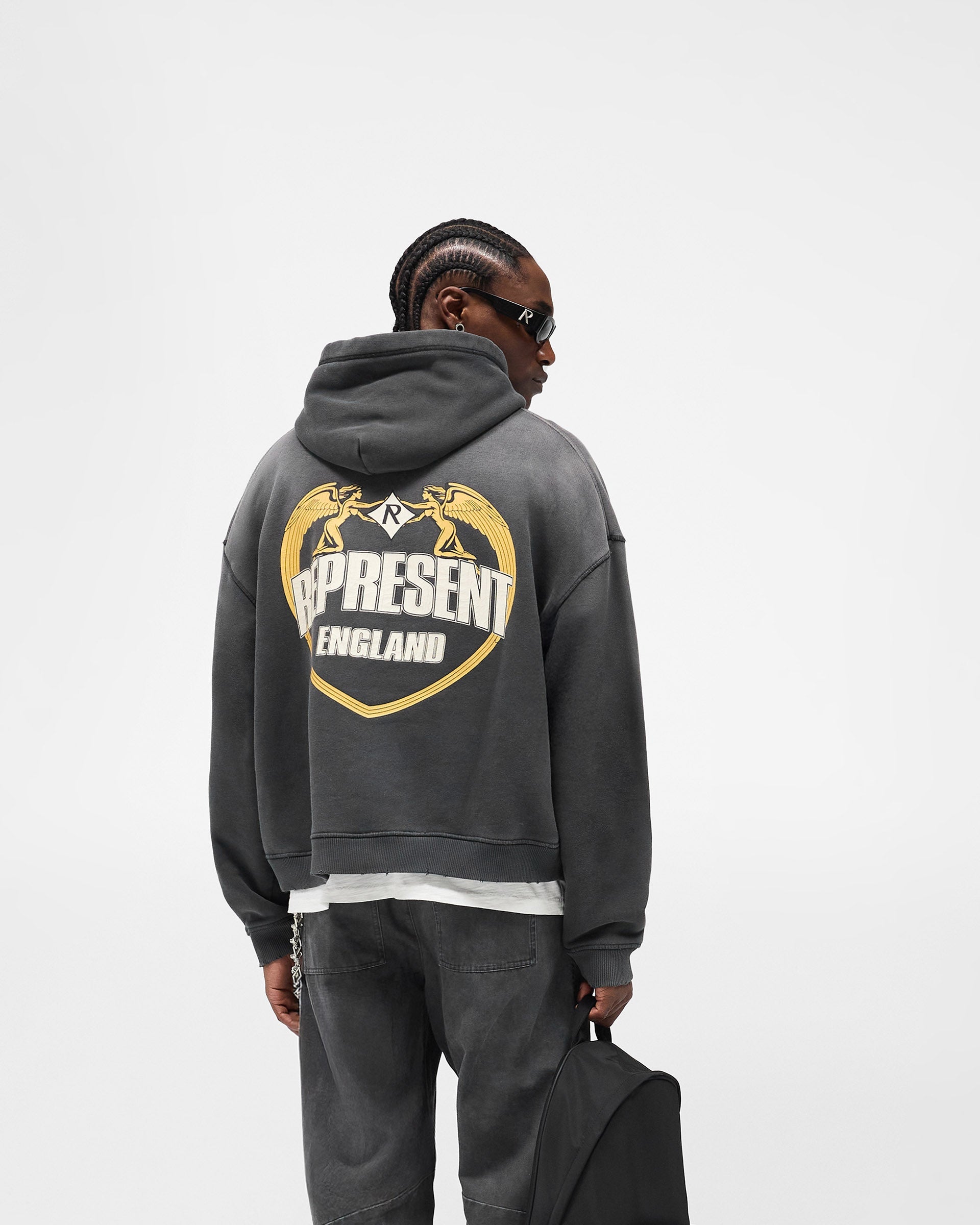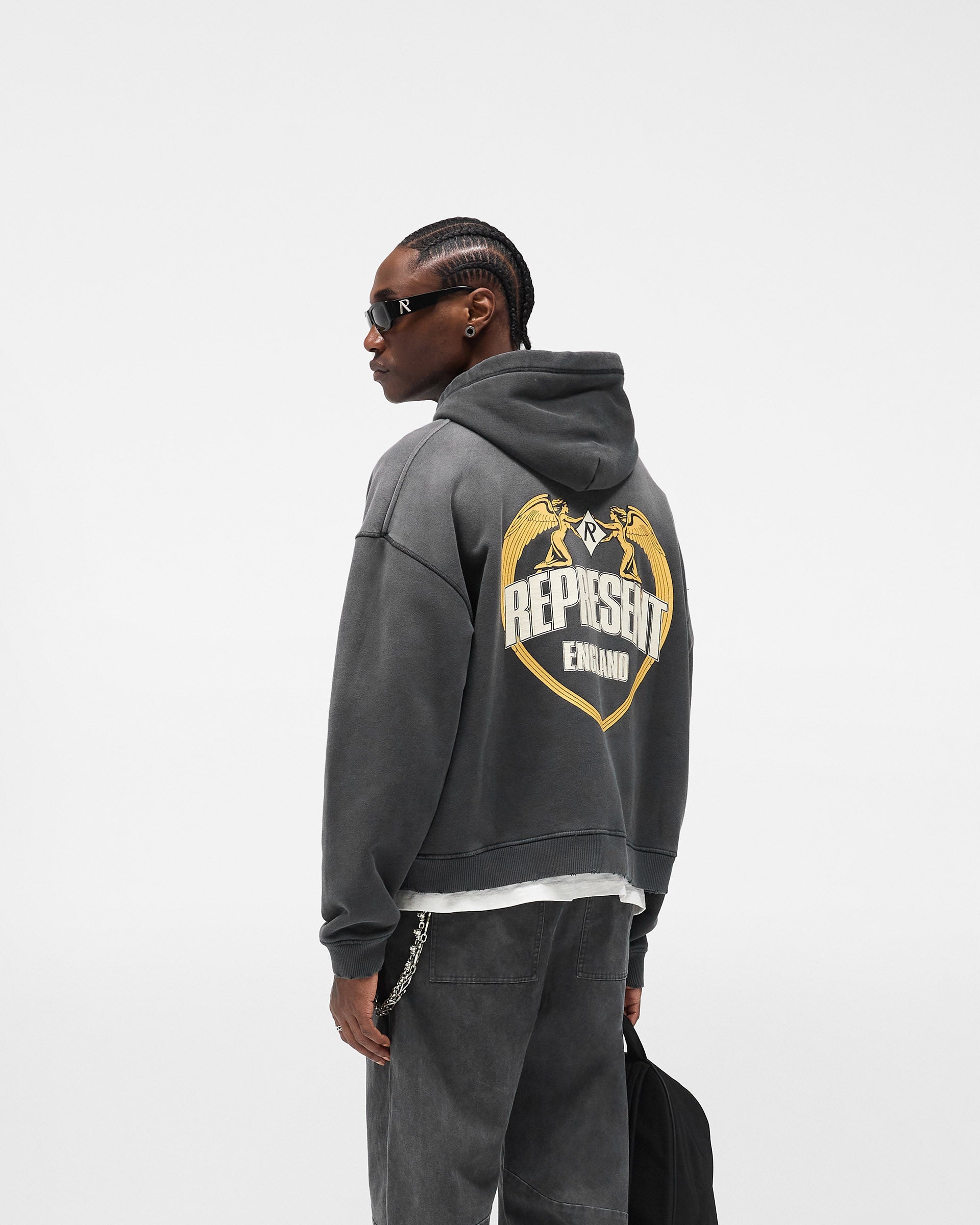 Represent Angel Border Hoodie – Stained Black