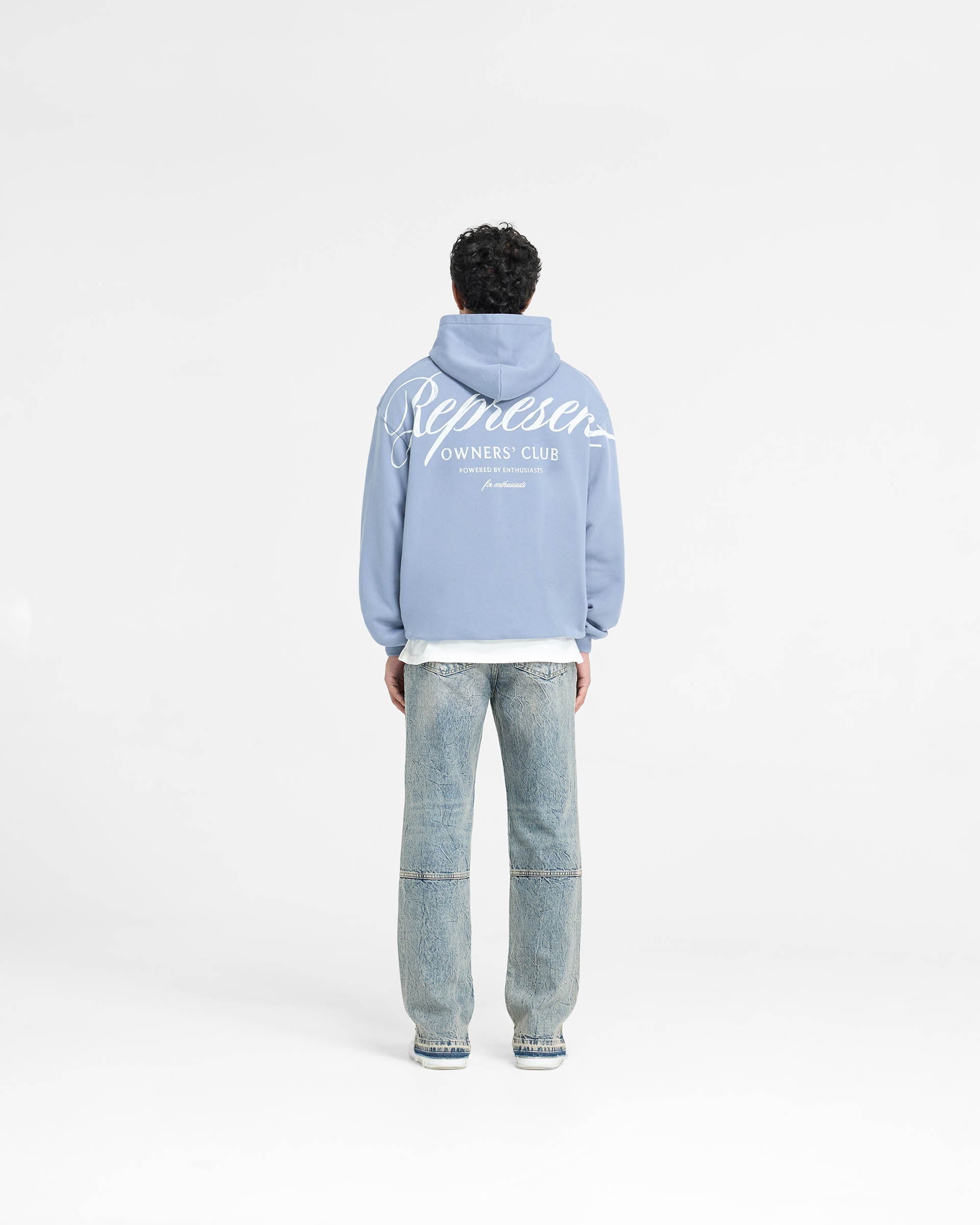 Introducing the latest evolution of the Represent Owners’ Club Hoodie in Dusty Blue, crafted from heavy weight jersey cotton with a slightly oversized fit. The hoodie features a ribbed hem and cuffs, with a Cobrax popper to the hood and Represent metal bar to the pocket. The hoodie has a water based screen print script graphic to the back, with a brushed effect applied to the screen itself for a natural paint brush style finesse to the print. It maintains a balance with the DNA of the original style, with our “Powered by enthusiasts, for enthusiasts” motif. Represent Owners’ Club Script Hoodie Dusty Blue Oversized Fit Cobrax Popper Loopback Jersey Ribbed Trims Represent Metal Bar Logo Composition: 100% Cotton480gsm Model Measurements: Model is 188cm and 75kg wearing size M