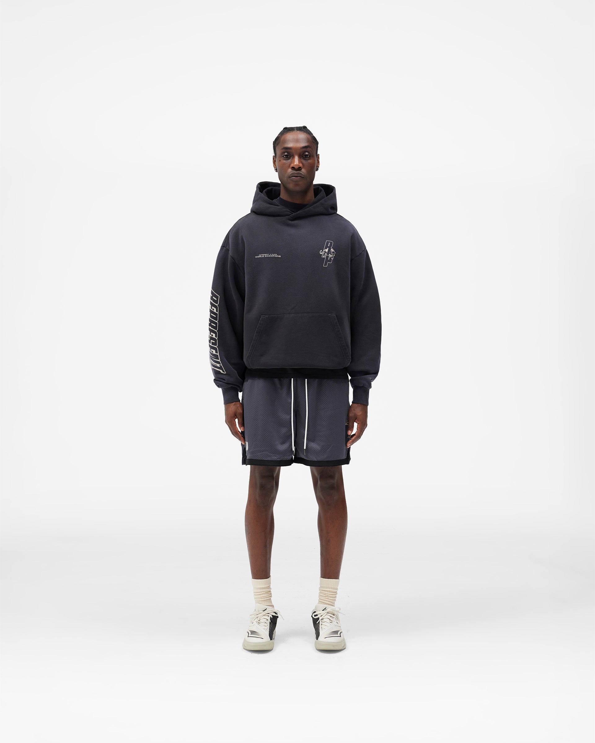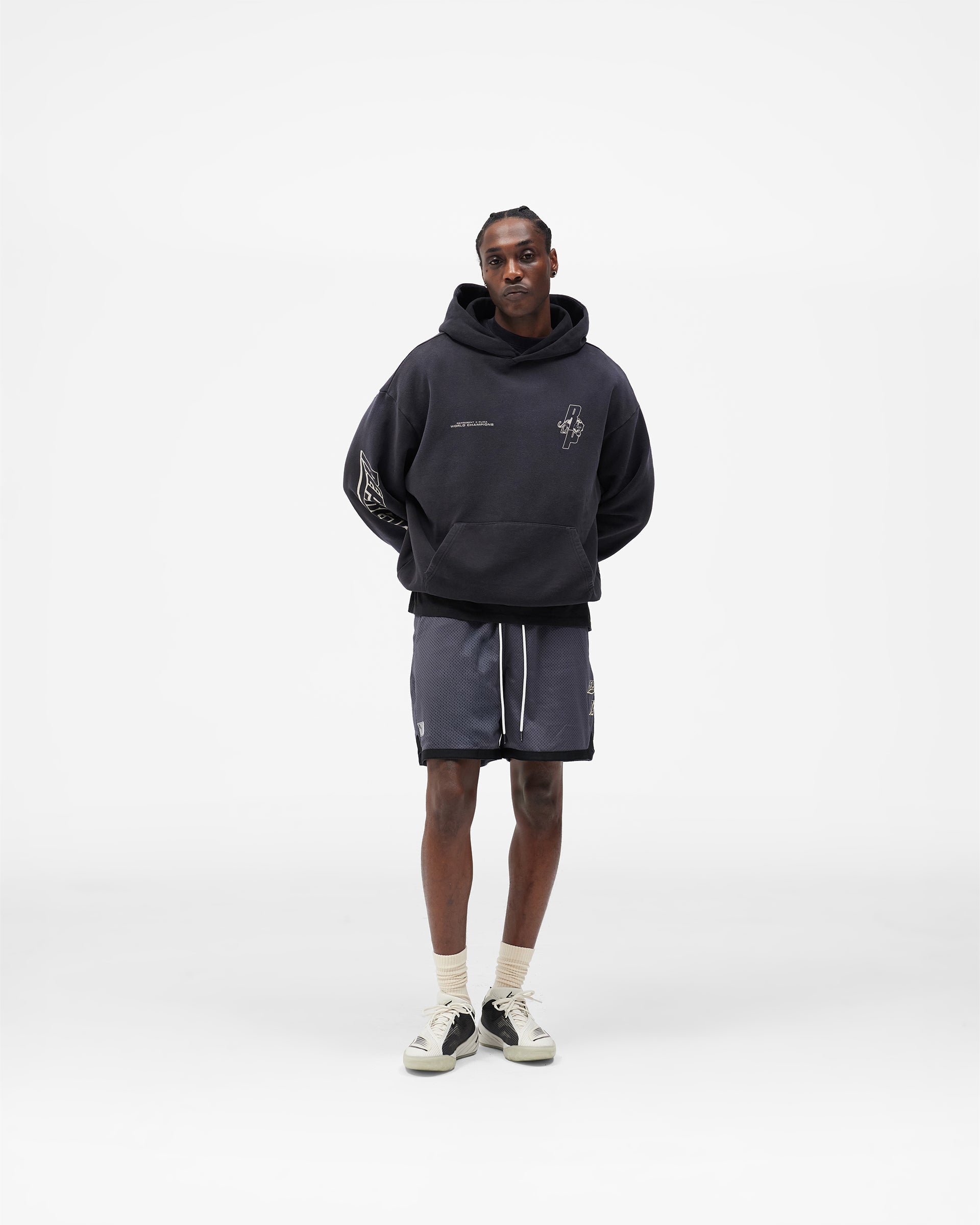 Pre-Order Notice: This item will ship from 23rd January. If your order contains multiple items, all items will be held and shipped together once everything is available. Introducing the Represent X PUMA Hoodie in Puma Black, a heavyweight essential designed as part of Represent’s first entry into basketball. Built to bridge court culture and everyday wear, this hoodie delivers comfort, presence, and statement graphics in equal measure.Cut with an oversized silhouette, the hoodie features a structured hood and classic kangaroo pocket for easy layering. Subtle chest branding is balanced by bold graphic artwork to the reverse, drawing inspiration from championship moments and basketball heritage. Finished in a clean black colourway. Puma Black Colourway Relaxed Fit Hoodie Heavyweight Fabric Construction Kangaroo Front Pocket Fixed Hood Ribbed Cuffs and Hem PUMA x Represent Graphic Branding Part of the Represent x PUMA Hoops Collection Composition: 100% Cotton Model Measurements: Model is 184.5cm and 72kg wearing size M