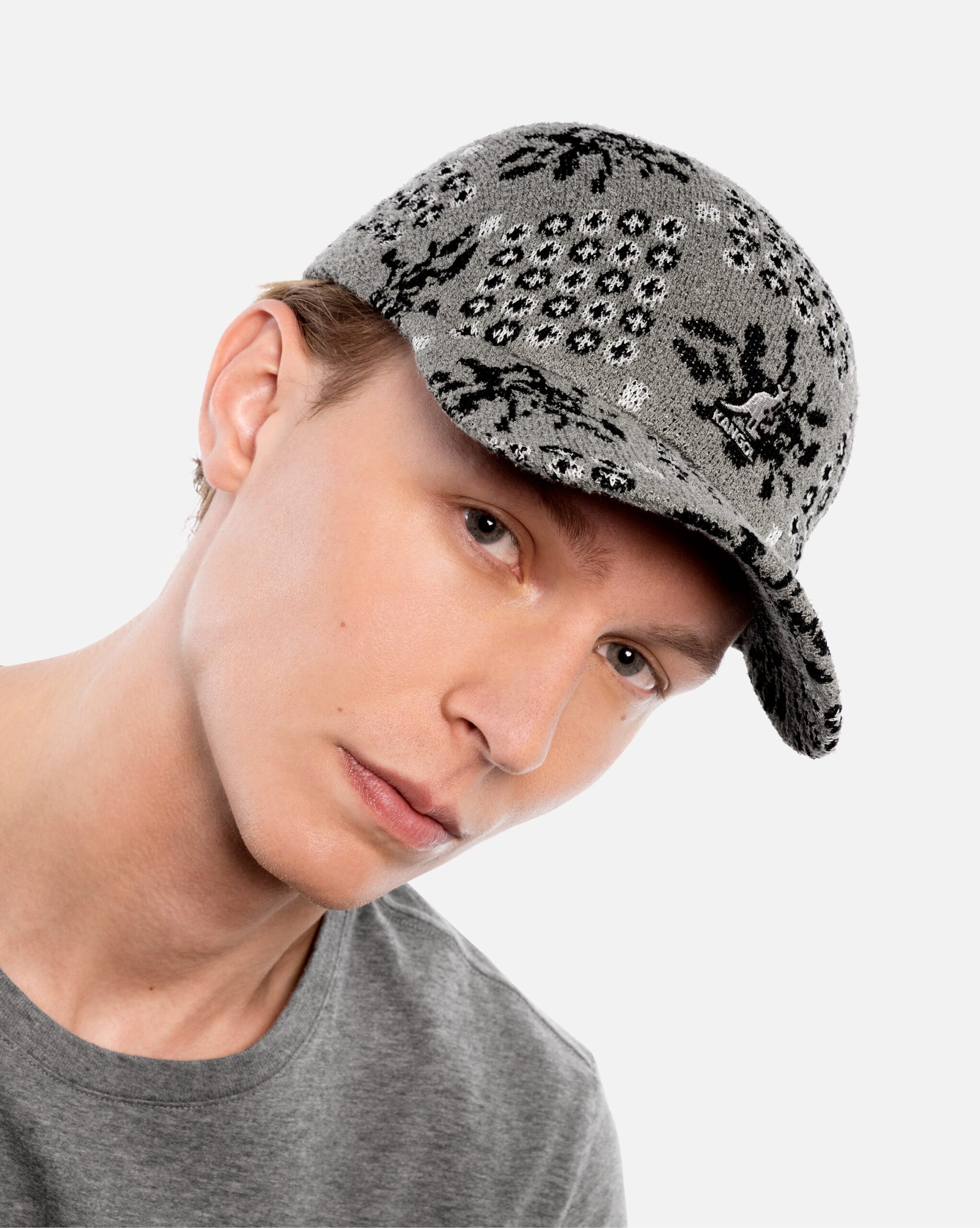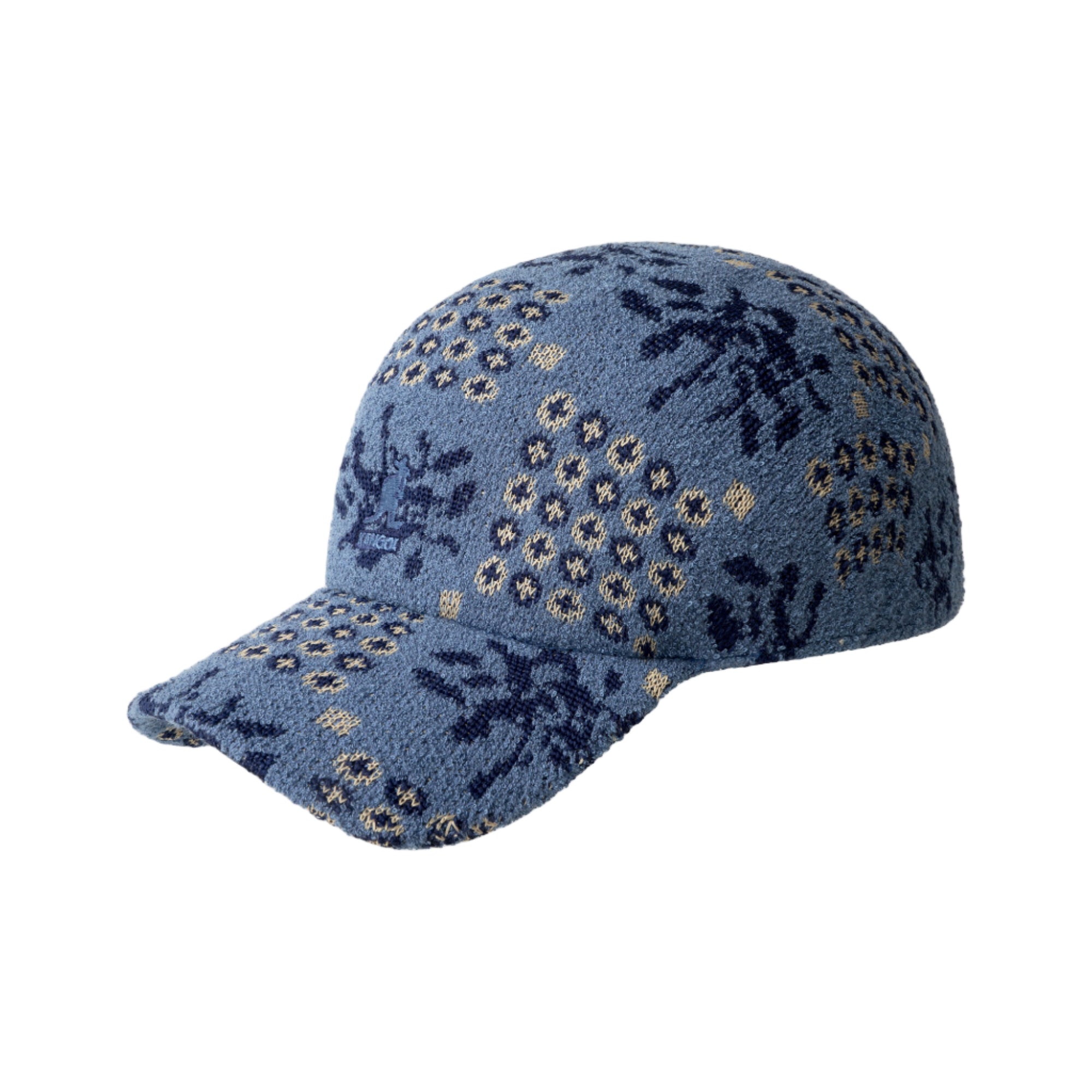 The Retro Quaint Spacecap by Kangol combines the bestselling Bermuda, Tropic & recycled Polyester yarns to create an allover high and low retro garden inspired texture. This 3-color pattern of geometrics and plant life repeats in a checkerboard style throughout for a unique look. it is finished this style with a classic Kangol® Kangaroo logo in matching colors at the front of the head. Fitted Spacecap Fit