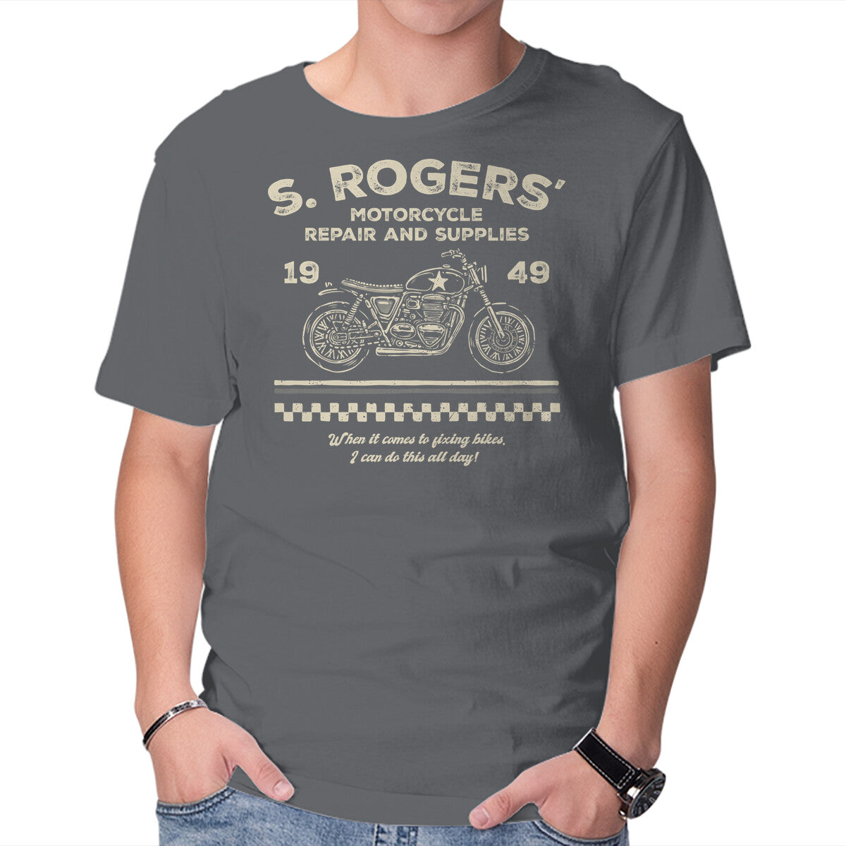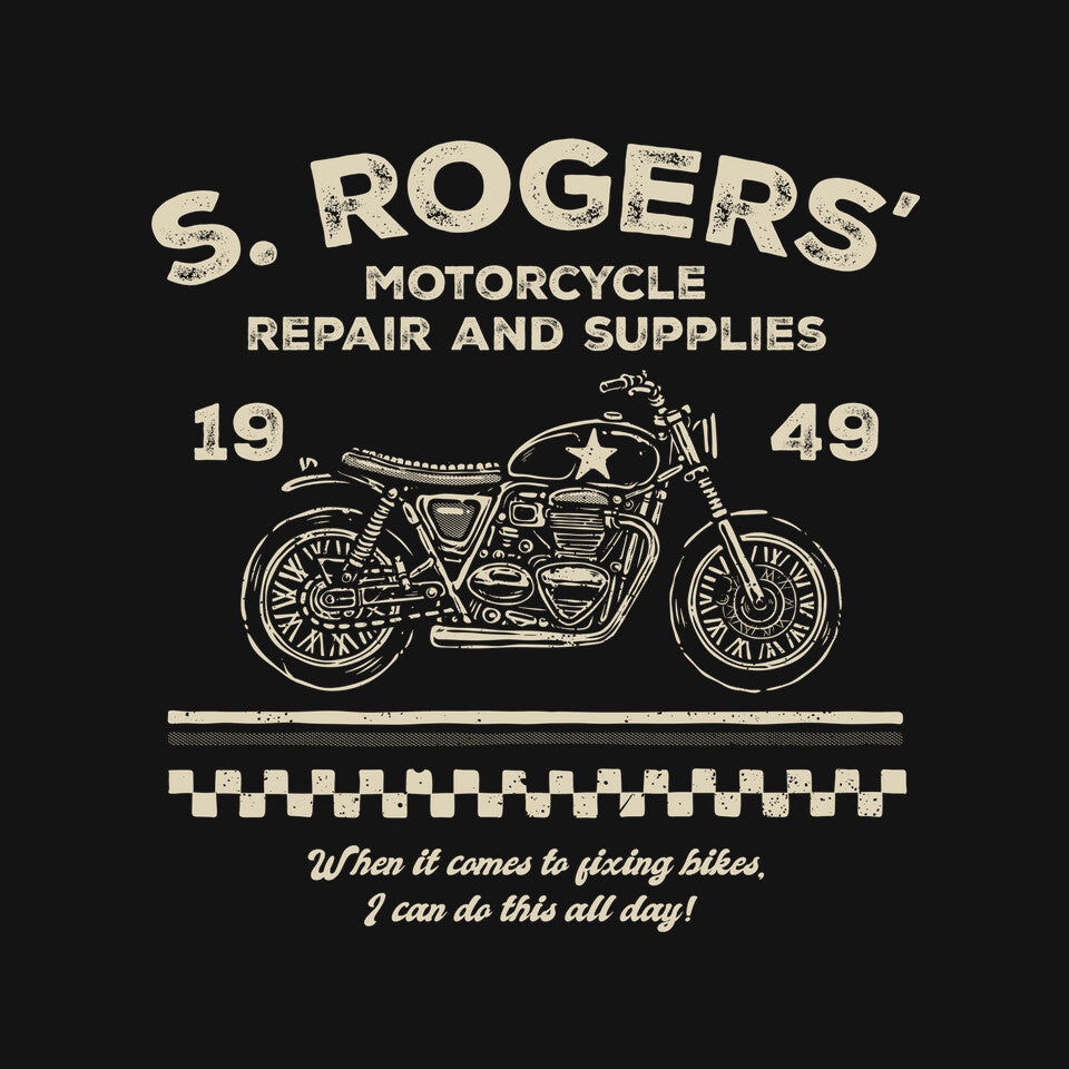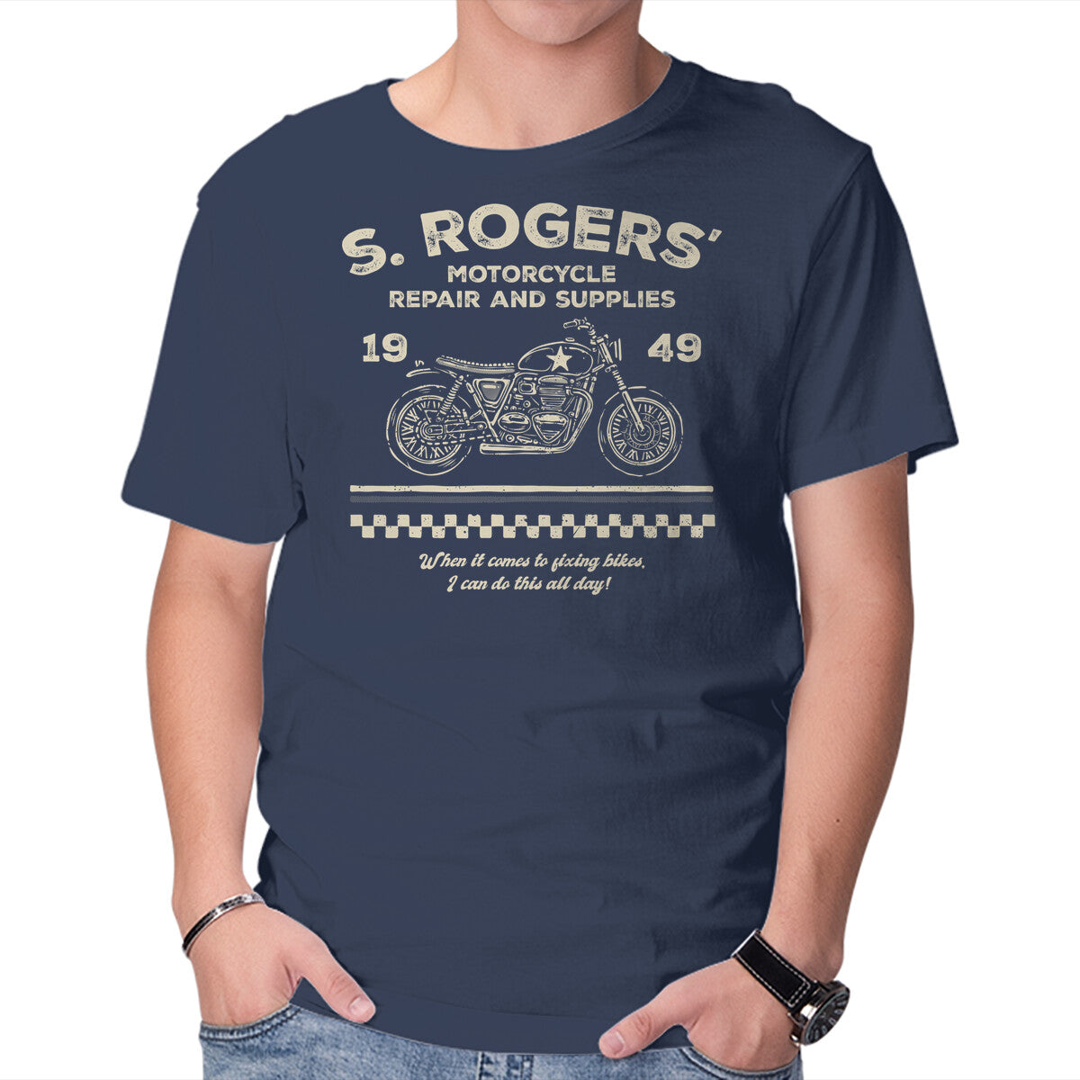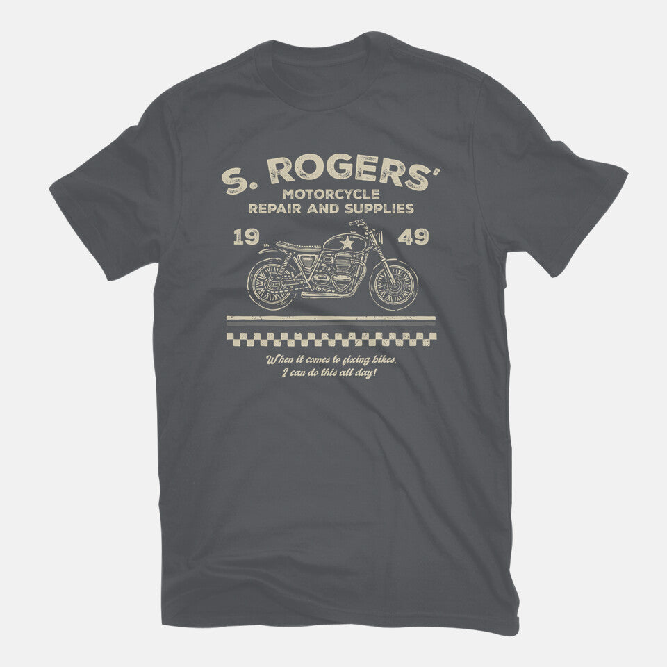 Rogers Motorcycle Repair is a great Mens Basic Tee from our amazing collection of custom fandom inspired products. This product was designed by glitchygorilla, who is part of our exclusive pop-culture inspired artist community.
