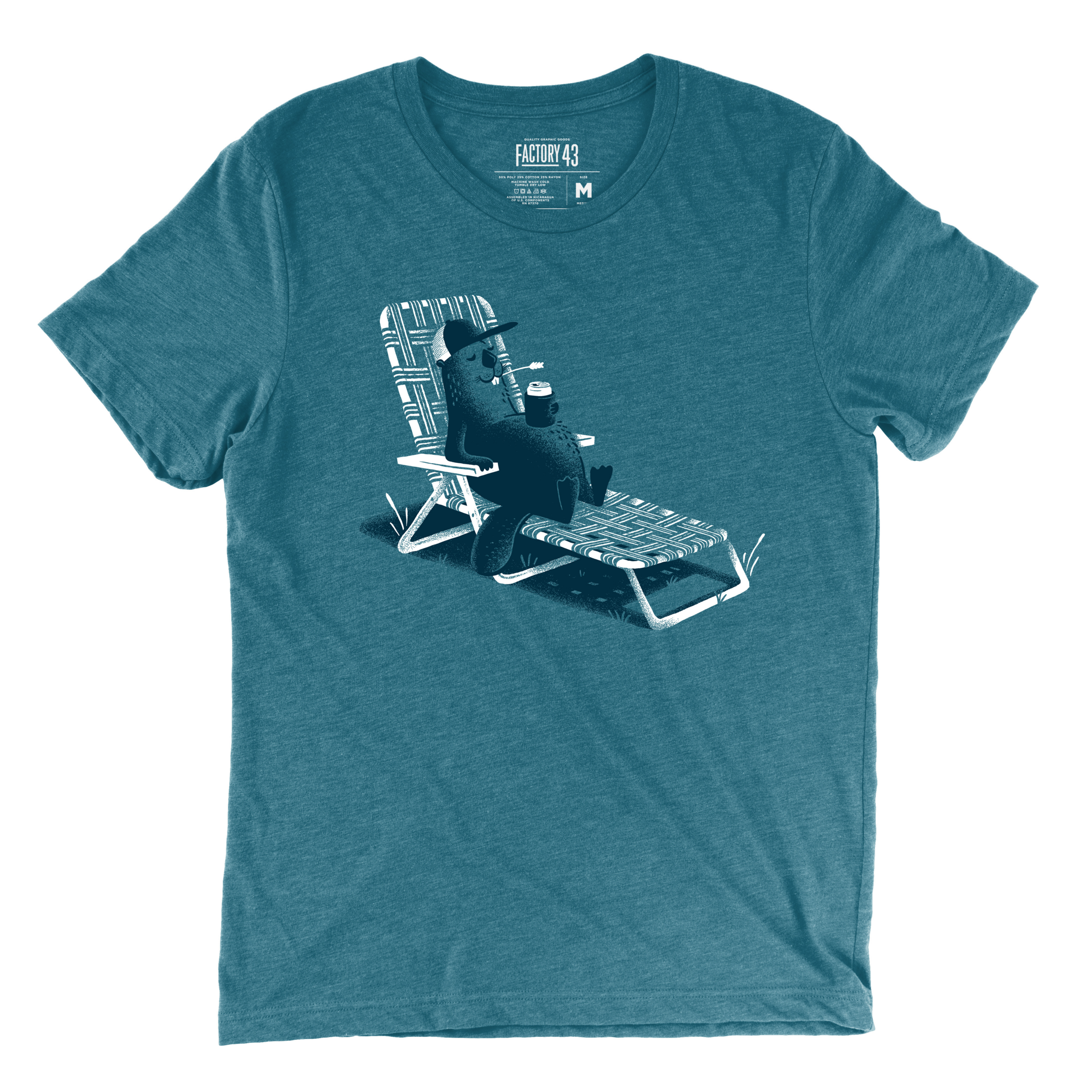 Super-soft triblend tee in Mustard or Steel Blue Water-based inks 3.8 oz., 50% polyester, 25% combed and ringspun cotton, 25% rayon blend