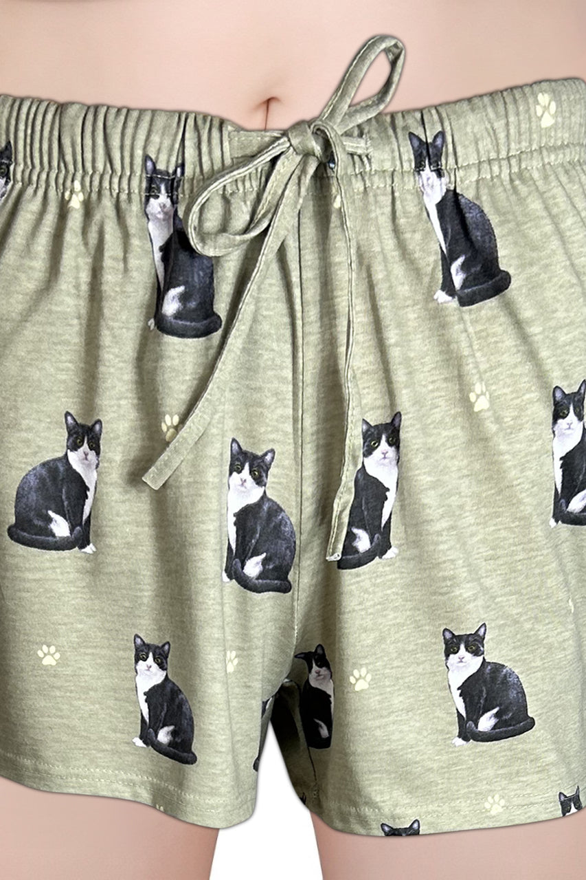 Womens Black & White Cat Print Lounge Shorts – Comfy & Stylish Shorts