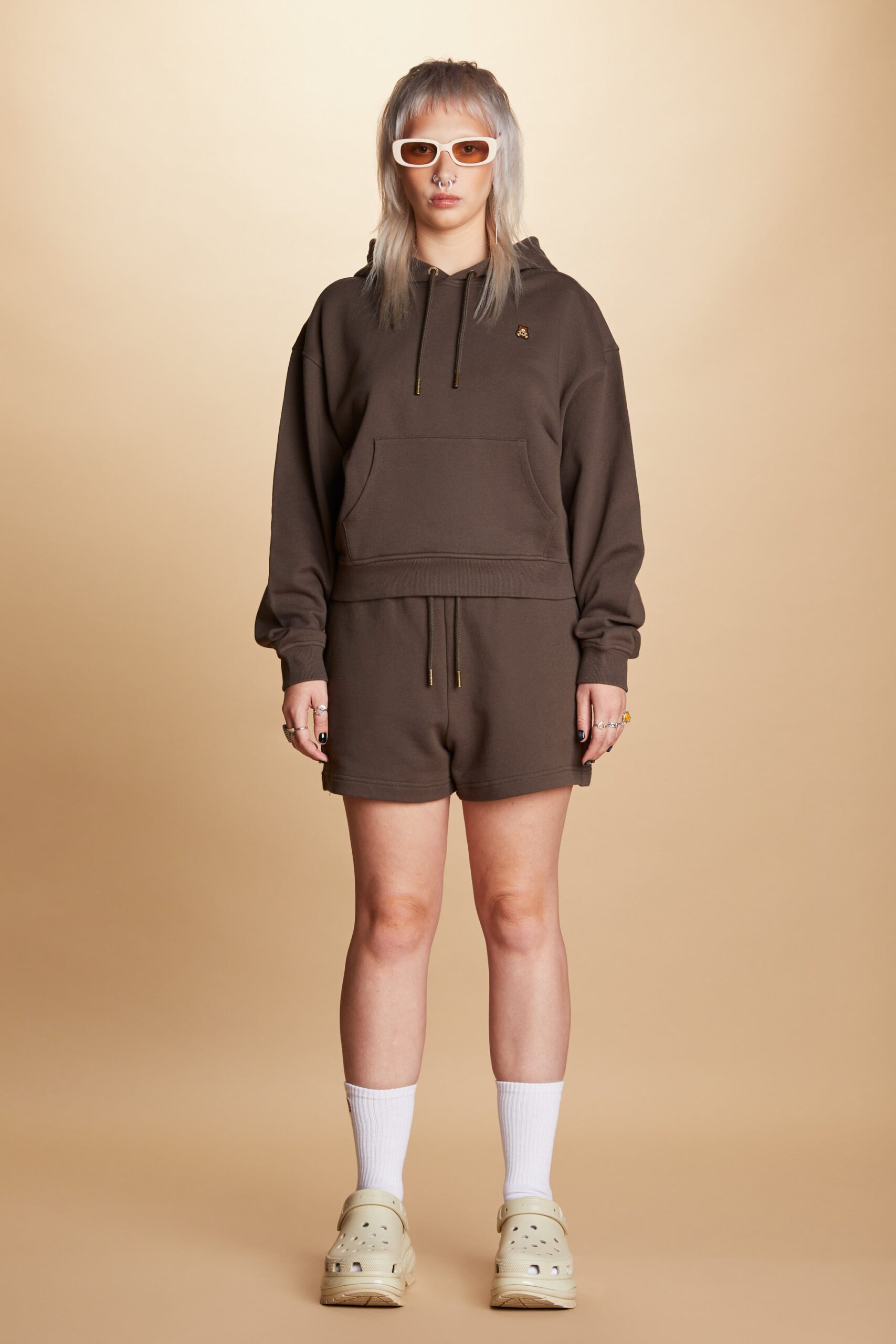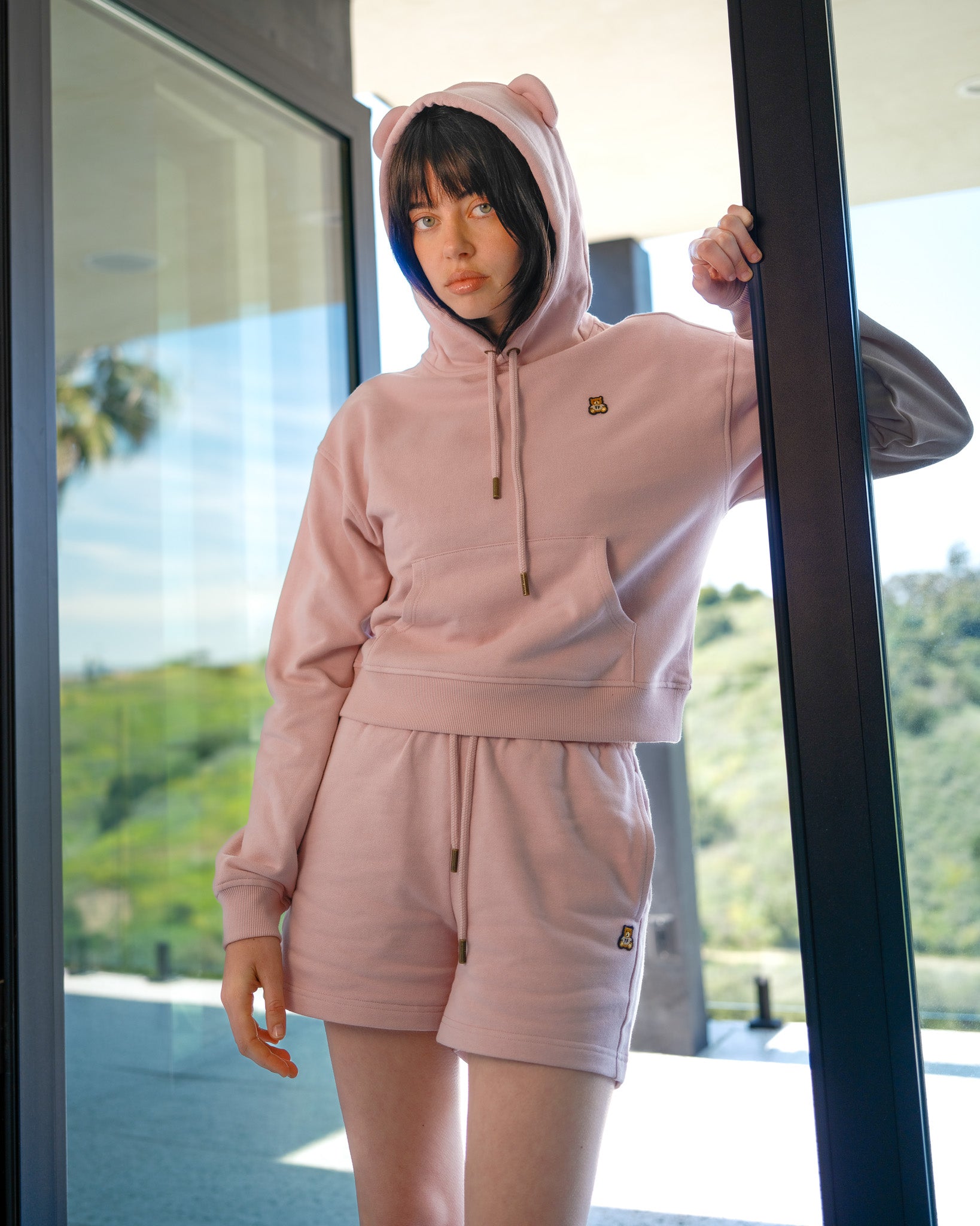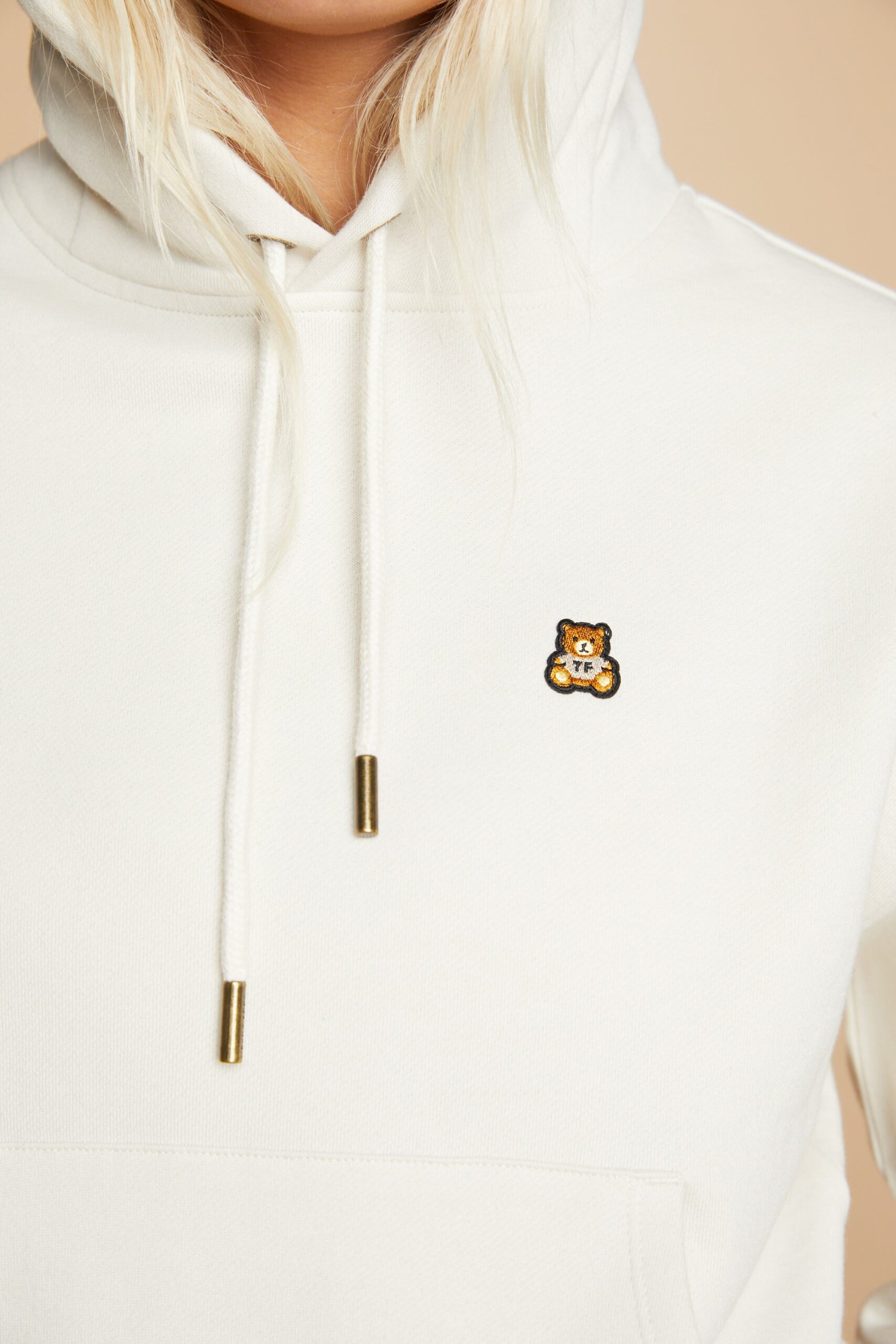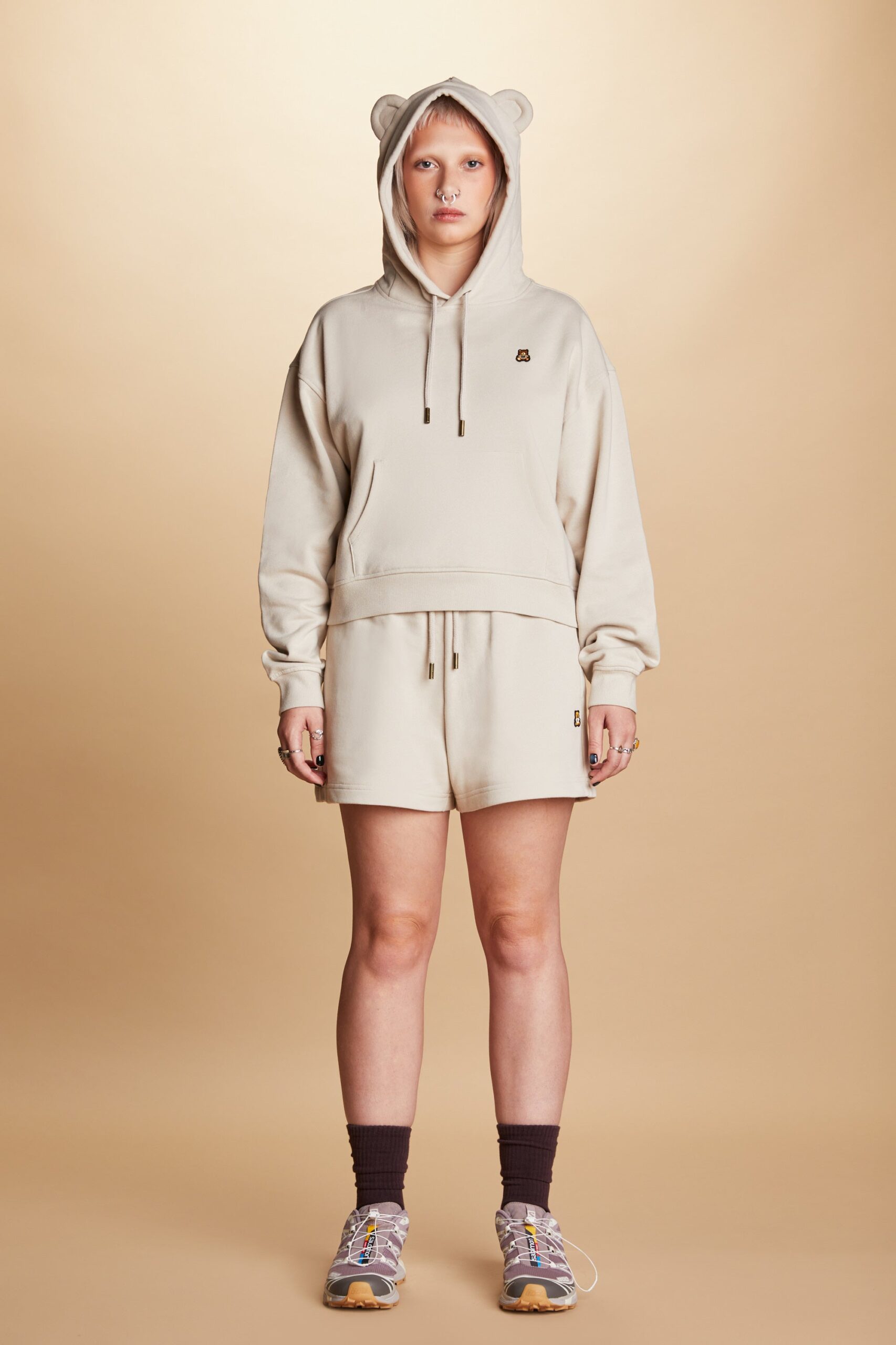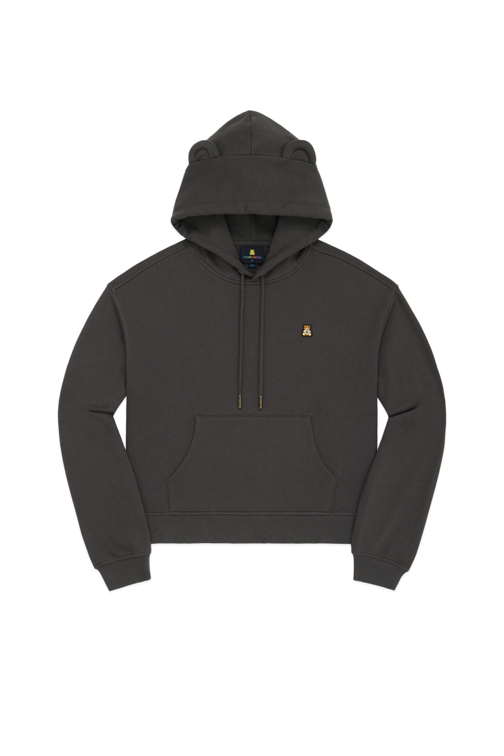 DETAILS Fleece hoodie with bear ears Braided drawcord hood with with debossed metal aglets Embroidered bear patch on chest Ribbed cuffs and waistband Kangaroo pocket 100% Pre-shrunk cotton fleece, 320gsm, fabric piece dyed FIT Women’s boxy fit Size Medium: Chest: 41.5″ Length: 22″ (measured flat) Sabrina is 5’7″ and wearing size S Model’s chest/bust: 34″ Model’s waist: 27″ Izabella is 5’7″ and wearing size M Model’s chest/bust: 33″ Model’s waist: 26.5″ Model’s hip: 37″ Aurora is 5’6″ and wearing size XS Model’s chest/bust: 34″ Model’s waist: 27″ Melanie is 5’7″ and wearing size XL Model’s chest/bust: 36″ Model’s waist: 31″